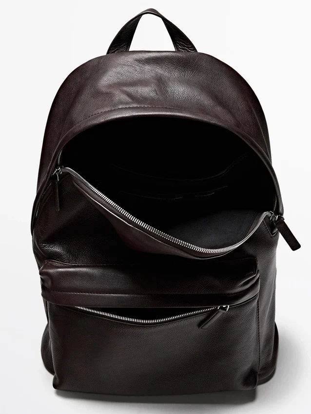 Backpack Made of Cowhide Leather with a Nappa Leather Finish. Zip Fastening. Handle. Features One Main Compartment and an Interior Zip-Up Pocket.. Cotton Lining.