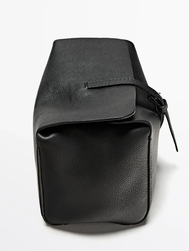 Toiletry Bag Made of Cowhide Leather with a Nappa Leather Finish.. Concealed Snap Button Fastening .