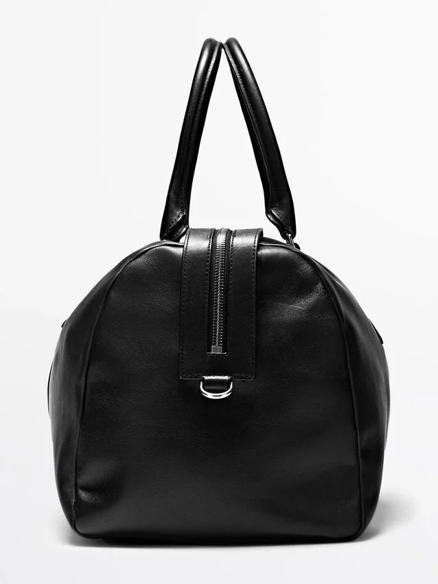 Handbag Made of Cowhide Leather with a Nappa Finish. Adjustable and Detachable Crossbody Strap. It Has a Two-Way Zip Fastening. Wrist Strap. Inner Pocket with Zip. Cotton Lining.