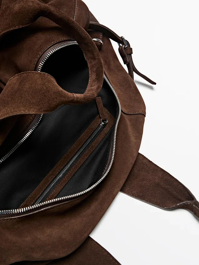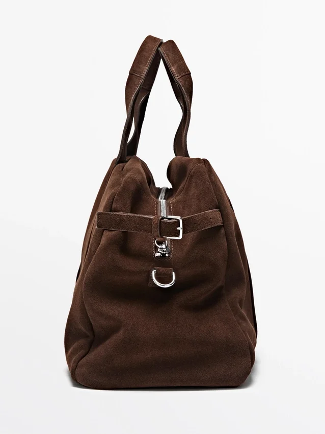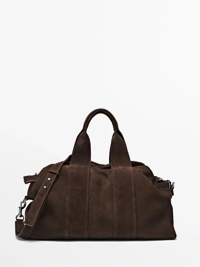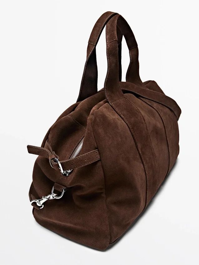 Handbag Made of Bovine Leather with Suede Finish. Zip Fastening. Two Handles and Shoulder Straps . Cotton Lining.