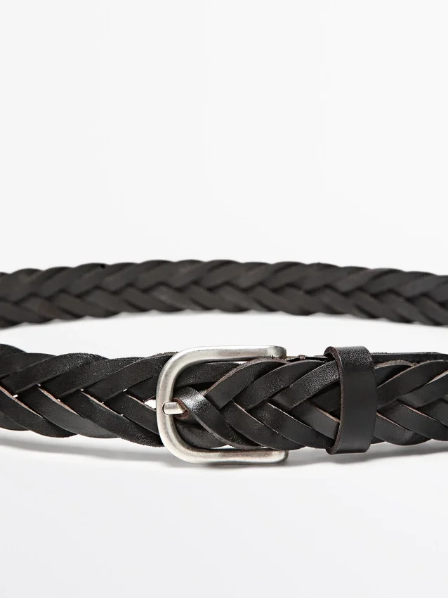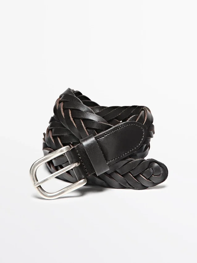 Belt Made of Cowhide Leather with a Nappa Finish. 3 Cm Wide. Braided Detail. Metal Buckle Closure.