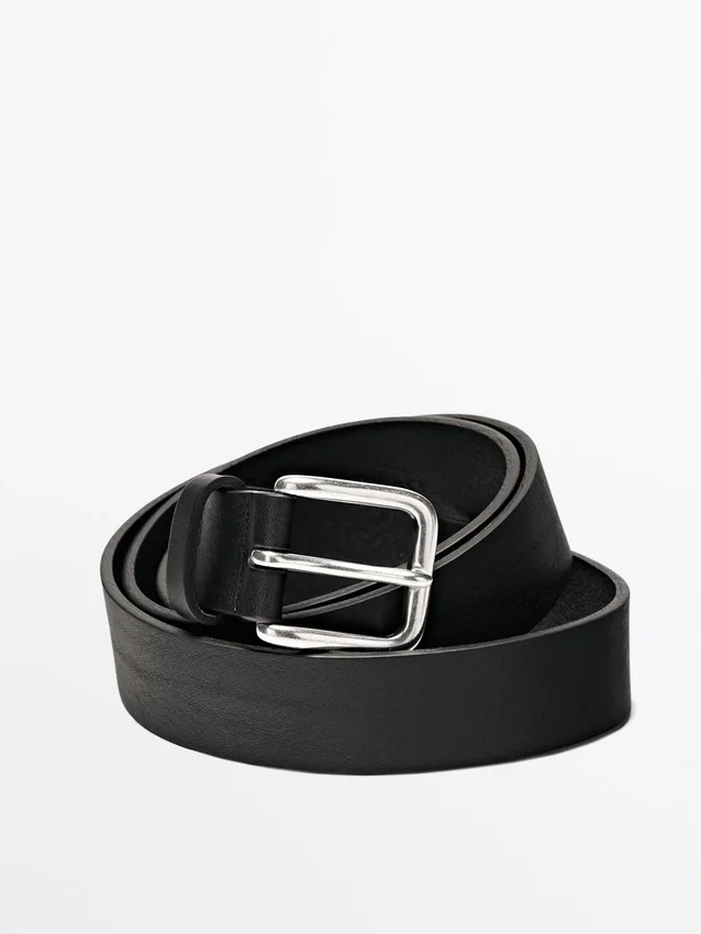 Belt Made of Cowhide Leather with a Nappa Finish. 3 Cm Wide. Square Metal Buckle .