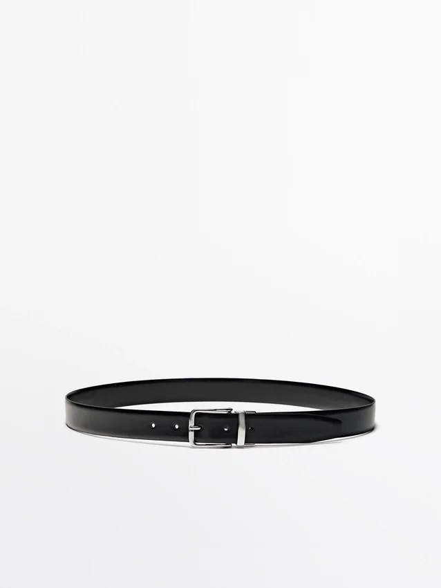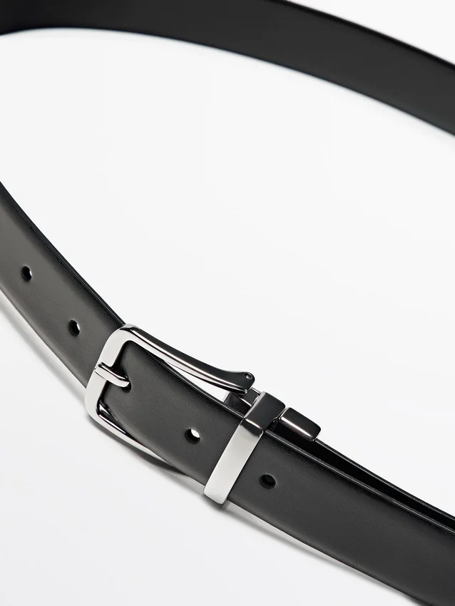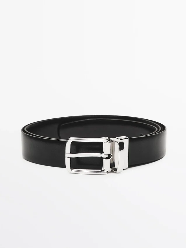 Belt Made of Cowhide Leather with a Nappa Finish. Detail of Reversible Garment. Metal Buckle Closure.