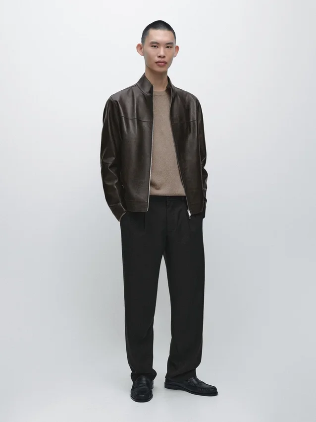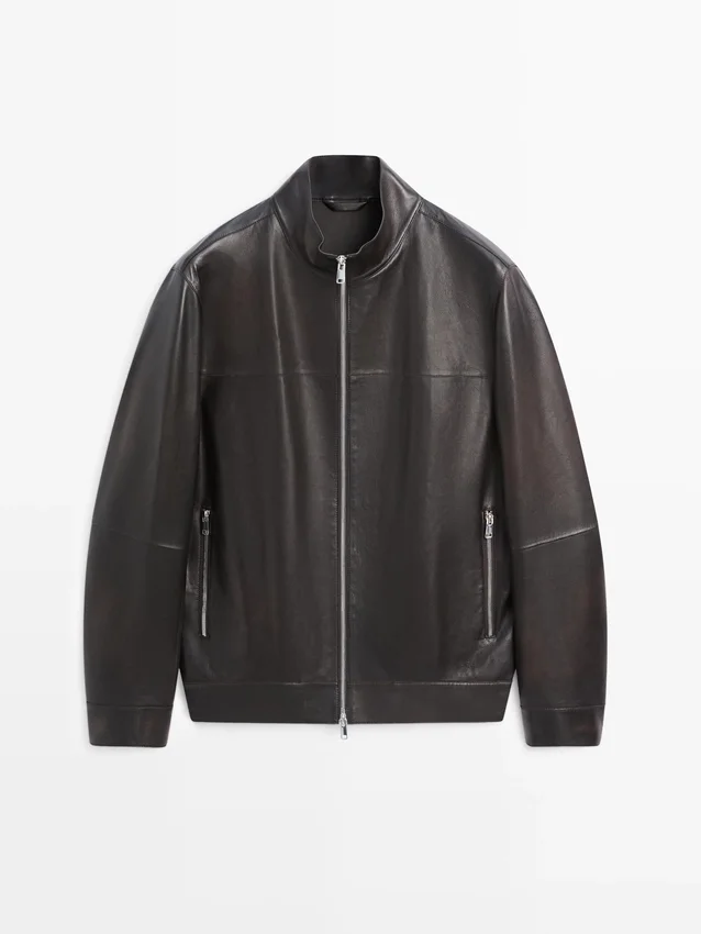 Jacket Made of Sheepskin Leather with a Nappa Finish . It Has a Two-Way Zip Fastening. High Collar. Two Side Pockets. Seam Details .