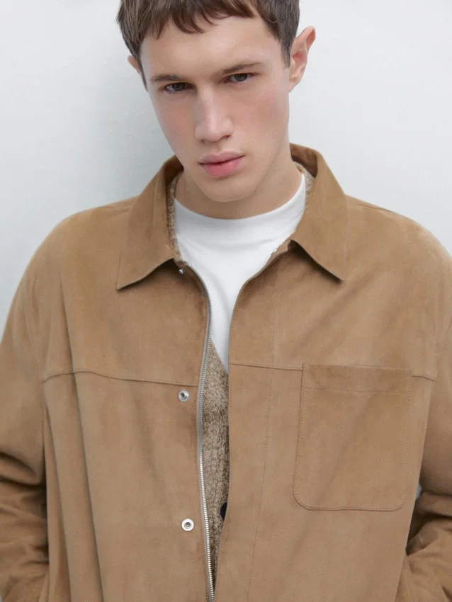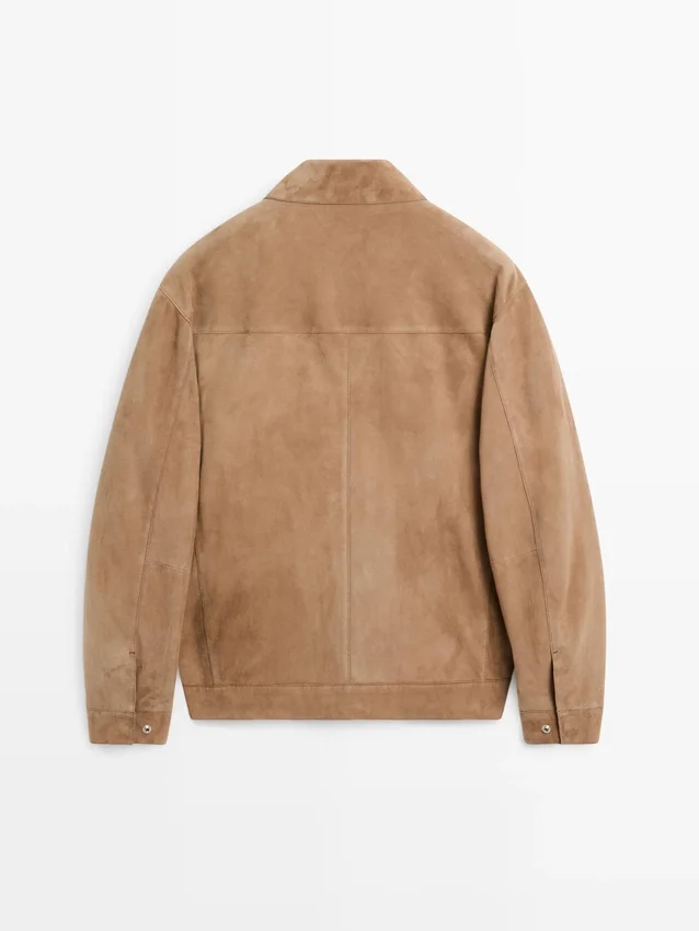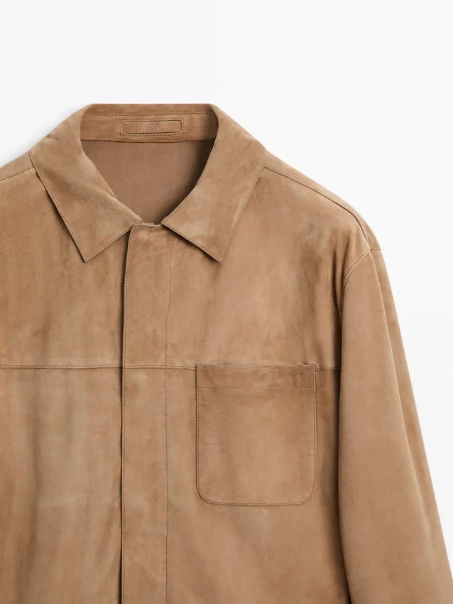 Jacket Made of Goatskin Leather with a Suede Finish. Shirt Collar. Concealed Zip Closure with Buttoned Placket. Patch Pocket at the Chest. Lined.
