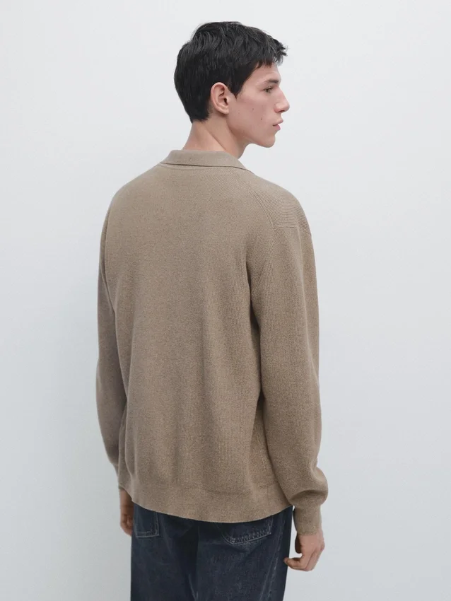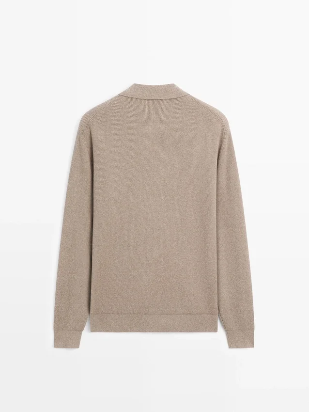 Cardigan Made of Knitted Fabric with Cotton. Button-Up Front. Polo Collar. Patch Pockets.