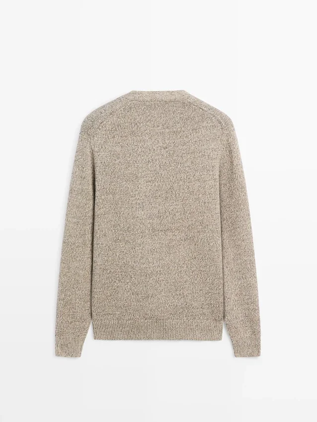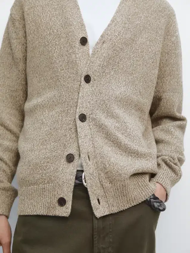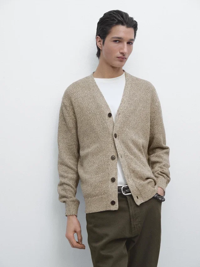 Cardigan Made of Knitted Fabric with Cotton. V-Neck. Long Sleeves. Button-Up Front. Ribbed Trims .