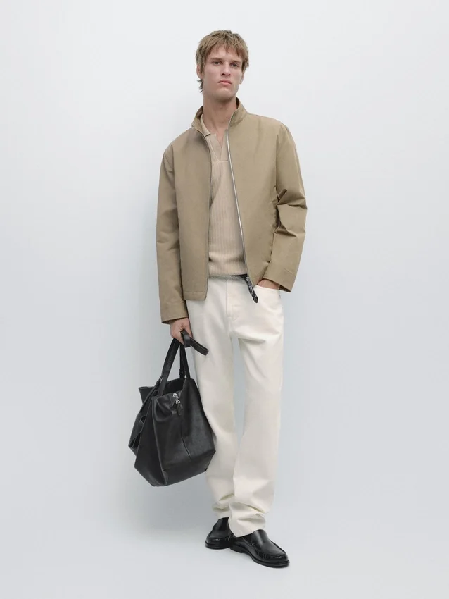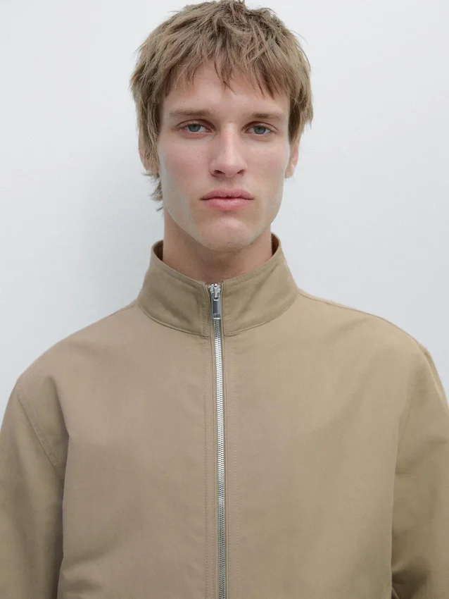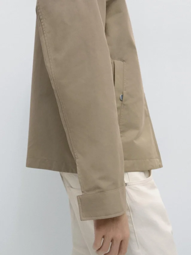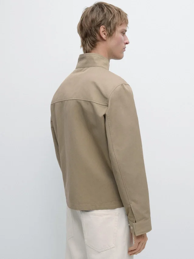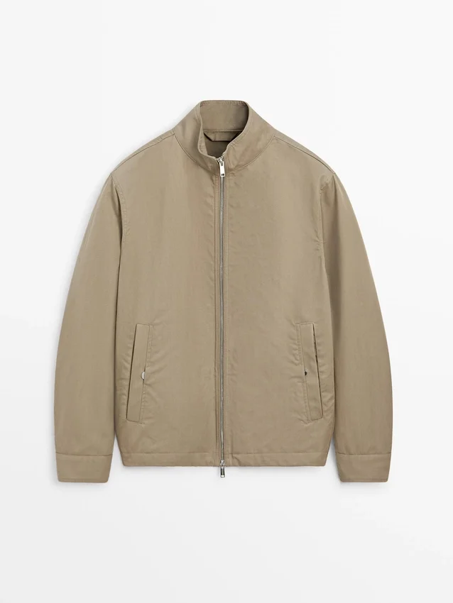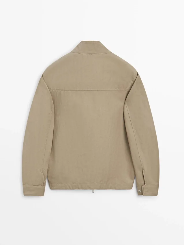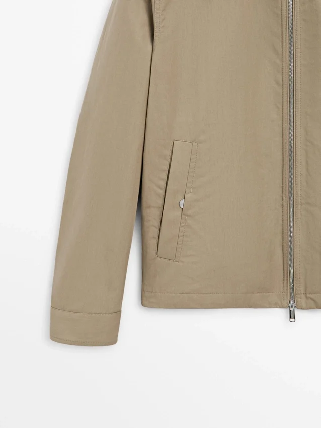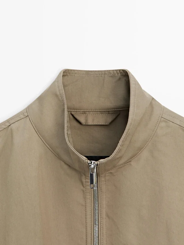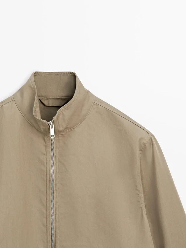 Jacket Made of Lightweight Fabric. Long Sleeves. It Has a Two-Way Zip Fastening. High Collar. Two Side Pockets.