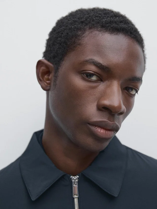 Jacket Made of Bi-Stretch Fabric. Shirt Collar. Long Sleeves. It Has a Two-Way Zip Fastening. Two Zipped Pockets.