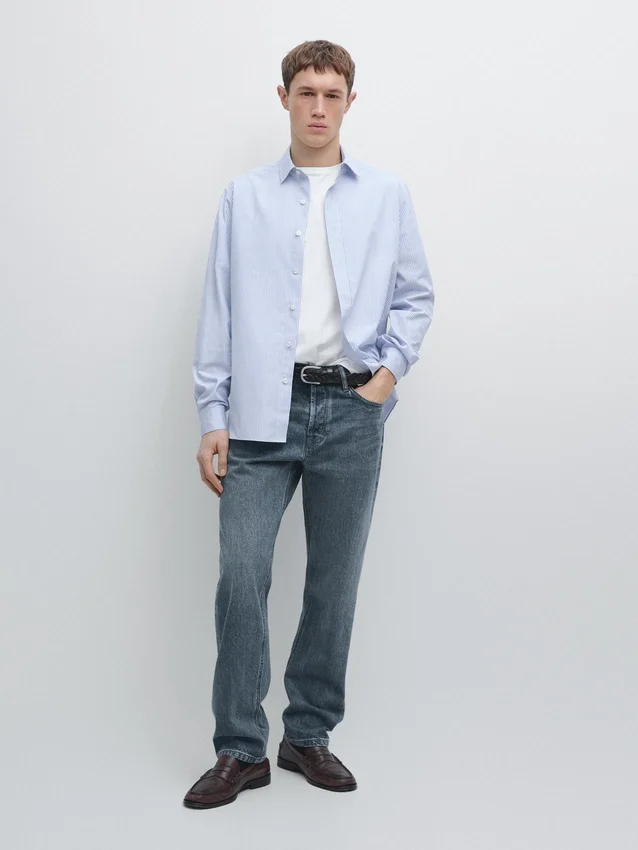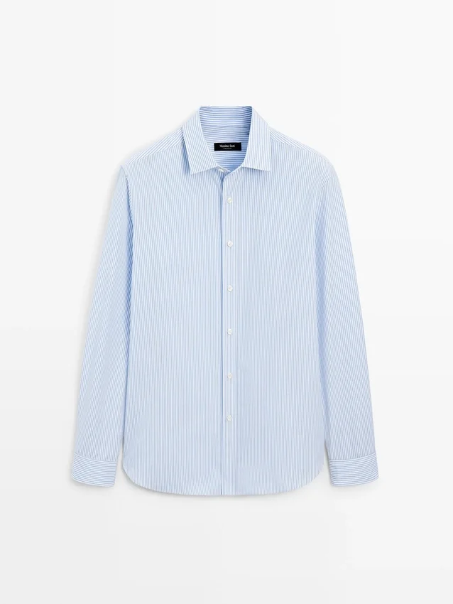 Regular Fit: This Fit Offers Comfort with a Bit More Room in the Torso and Arms, Providing a Classic, Yet Relaxed Style. Long Sleeves with Buttoned Cuffs. Shirt Collar. Button-Up Front. Striped Print.