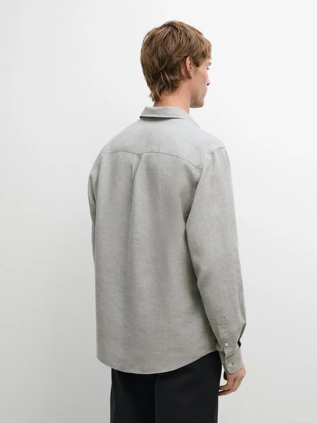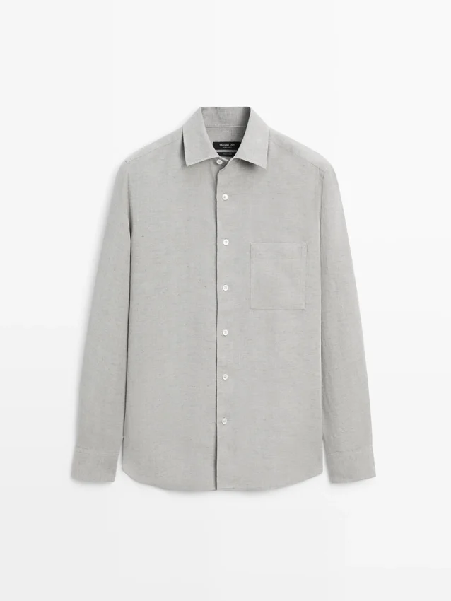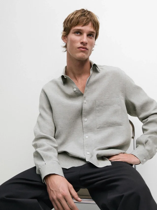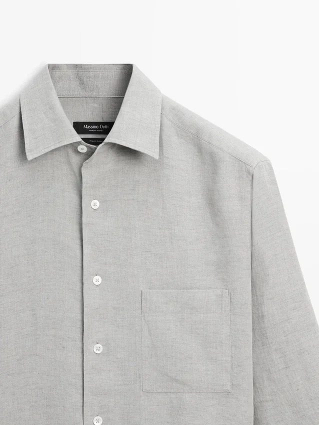Shirt Made of 100% Linen. Long Sleeves with Buttoned Cuffs. Shirt Collar. Button-Up Front. Patch Pocket at the Chest.