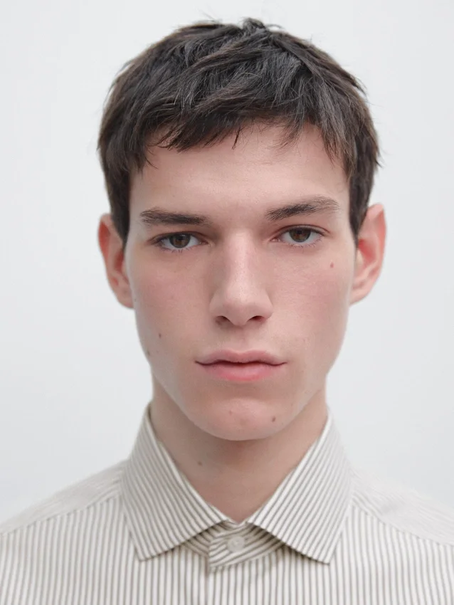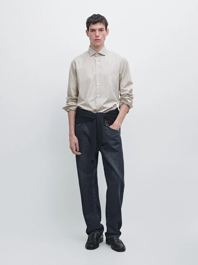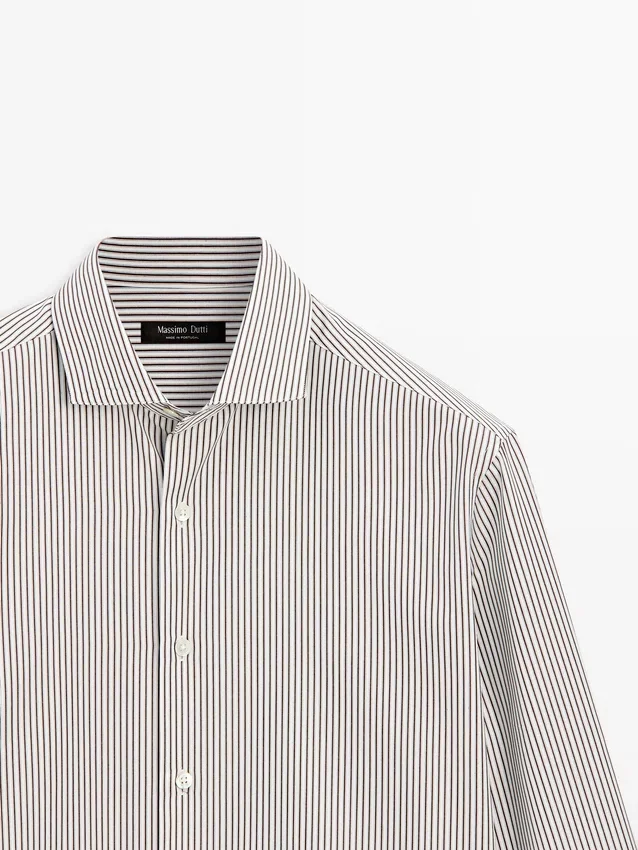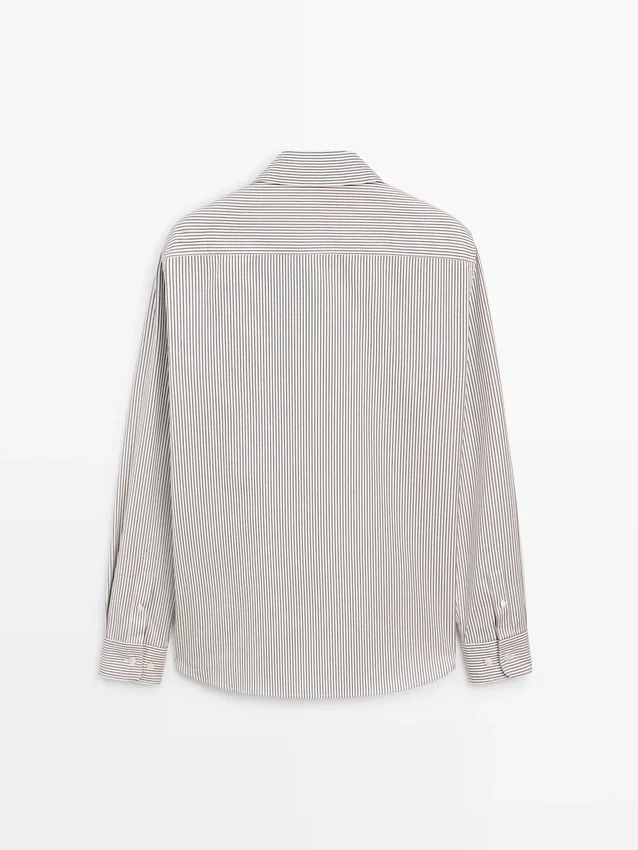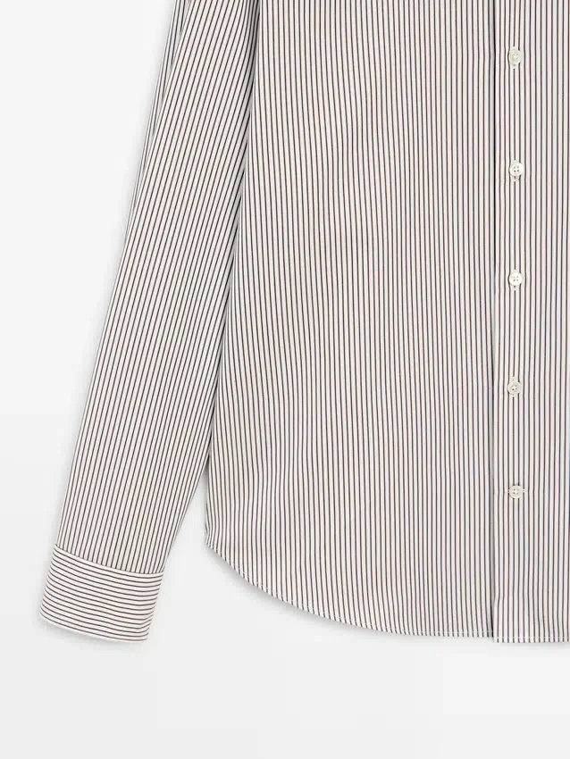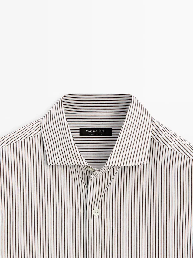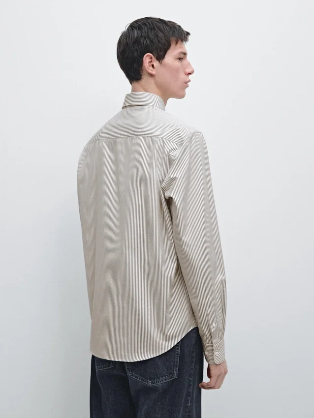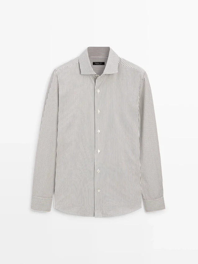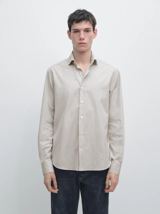 Striped Shirt Made of 100% Cotton Fabric. Long Sleeves with Buttoned Cuffs. Shirt Collar. Long Sleeves. Button Fastening.