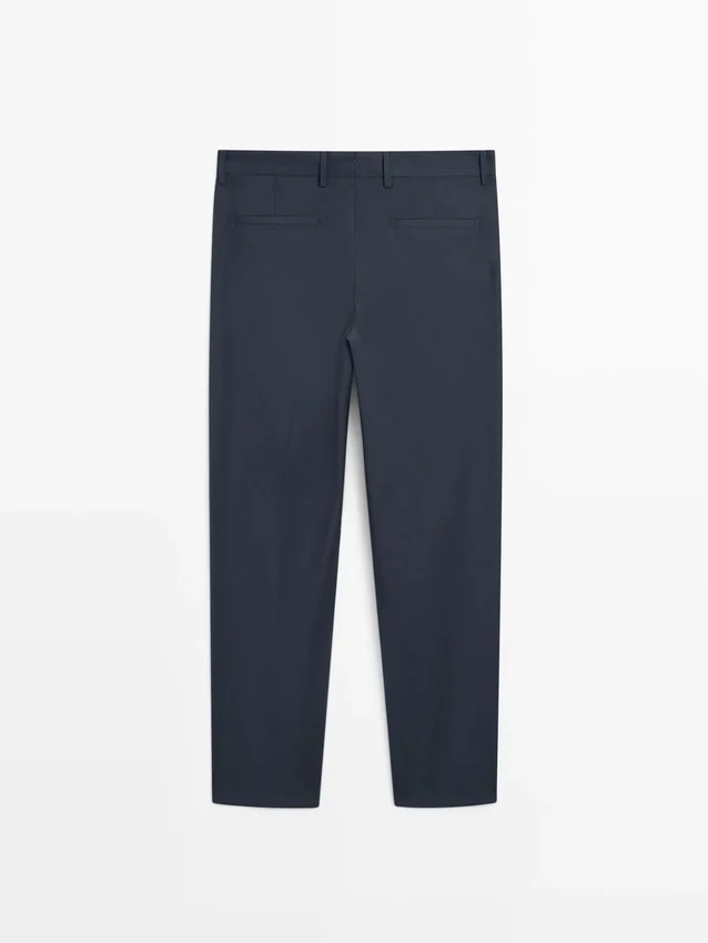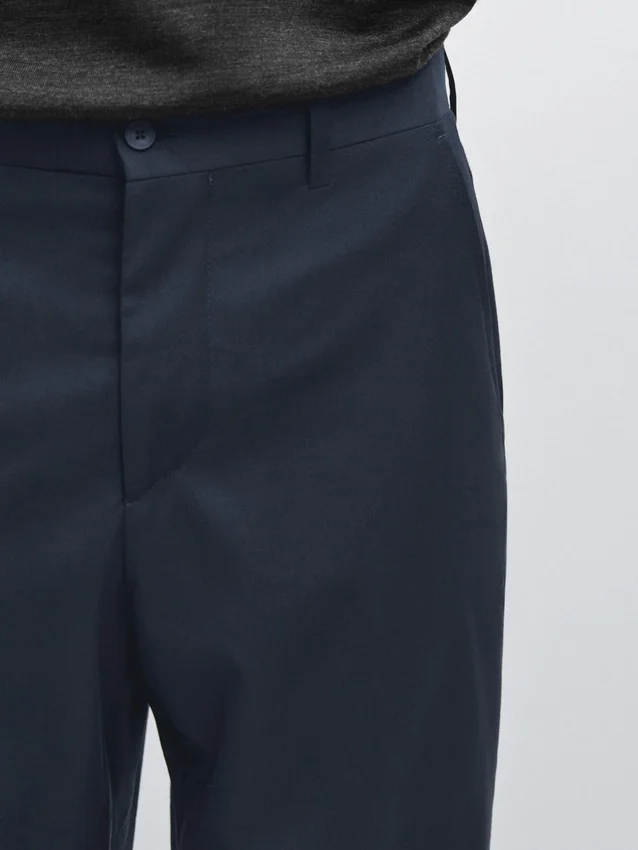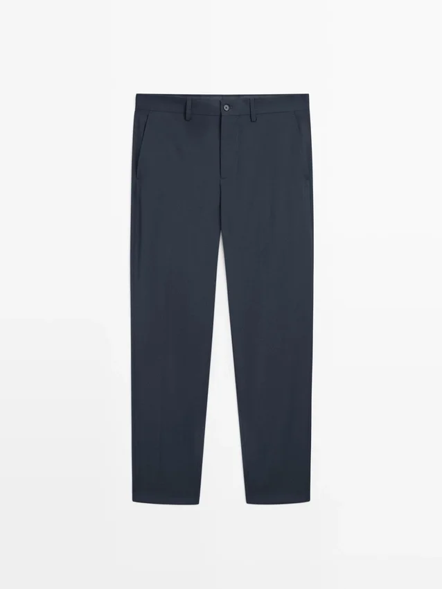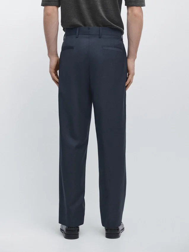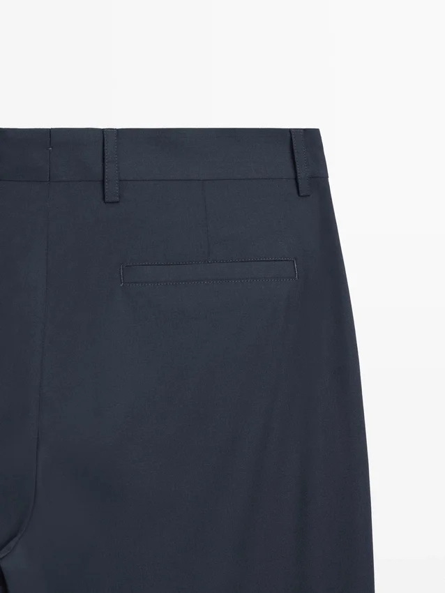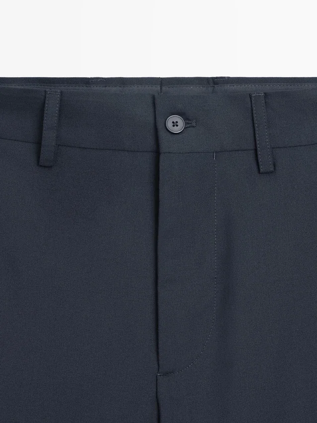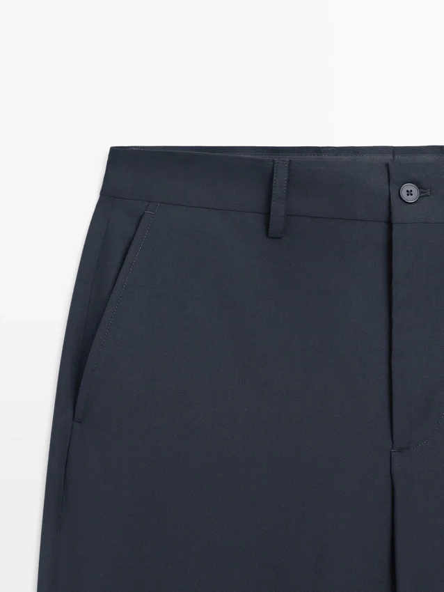 Suit Trousers Made from 100% Wool Main Fabric. Waistband with Belt Loops . Zip Fastening Concealed by a Placket, Button and Buttoned Strap. Two Side Pockets. Two Buttoned Welt Pockets on the Back. Cool Wool: Lightweight, Breathable and Wrinkle-Resistant Fabric.. This Garment is Part of a Suit.