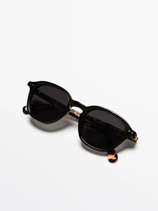 Resin Sunglasses. Polarised Lenses with 3 Uv Protection Filter. Includes a Protective Case.