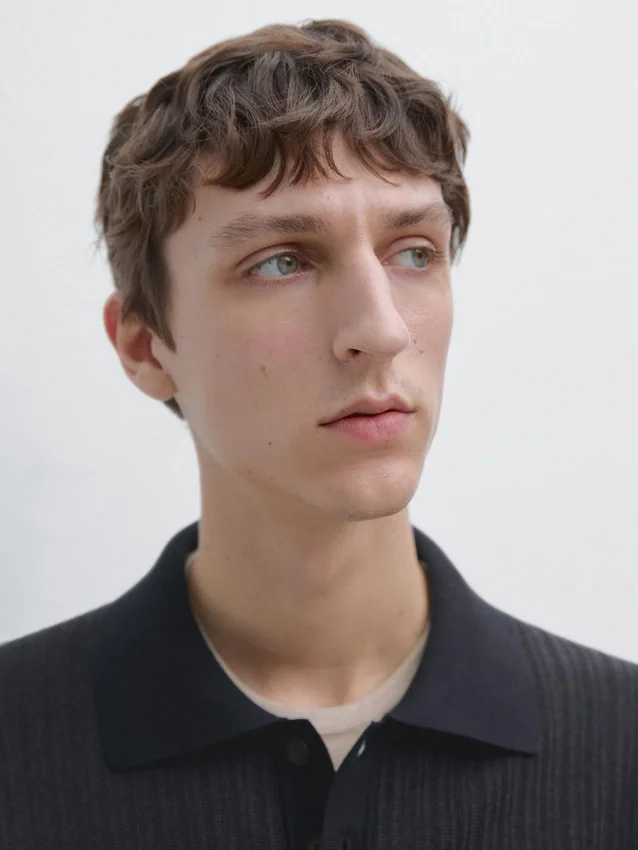 Polo Shirt Made of 100% Cotton Knit Fabric. Short Sleeves. Polo Collar with Button Fastening. Ribbed Trims . Textured Fabric. Wide and Relaxed Silhouette, Not Tailored.