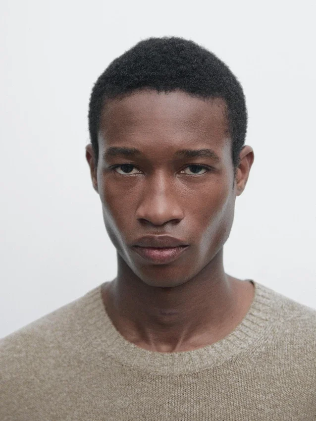 Sweater Made of Cotton and Linen Fabric. Crew Neck. Long Sleeves. Ribbed Trims .