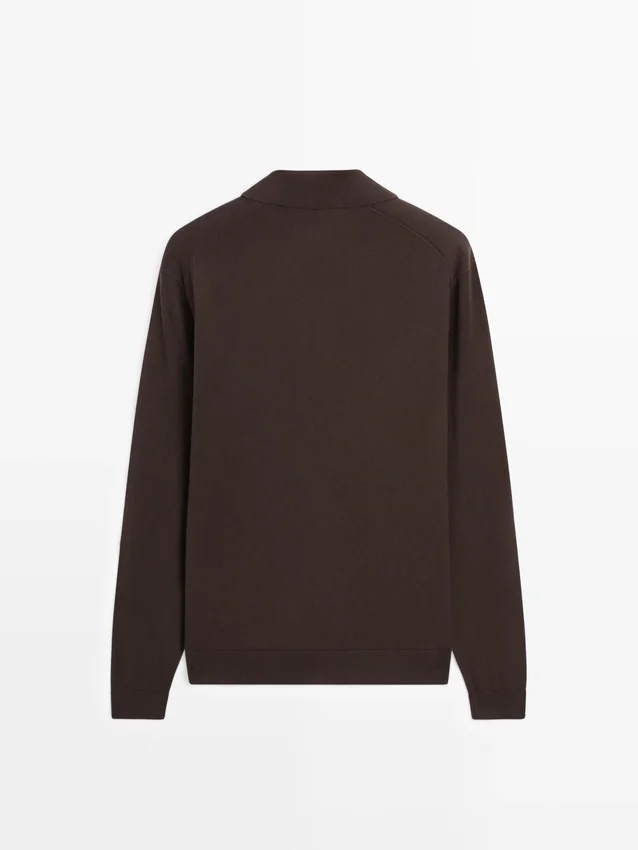Polo Shirt Made of 100% Cotton Knit Fabric. Johnny Collar. Drop Sleeve. Long Sleeves. Ribbed Trims . Wide and Relaxed Silhouette, Not Tailored.