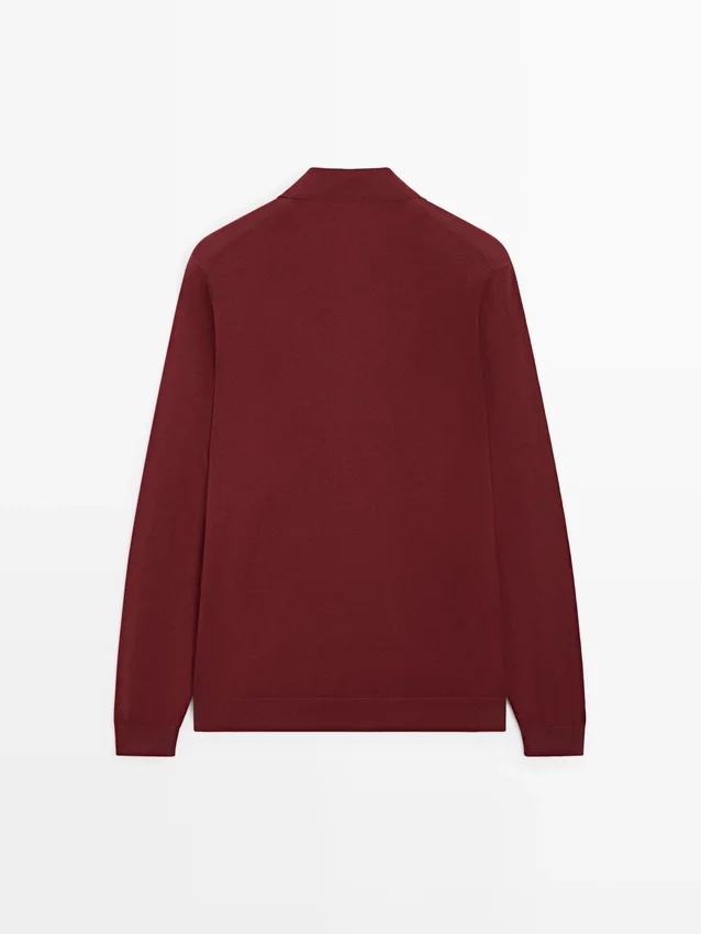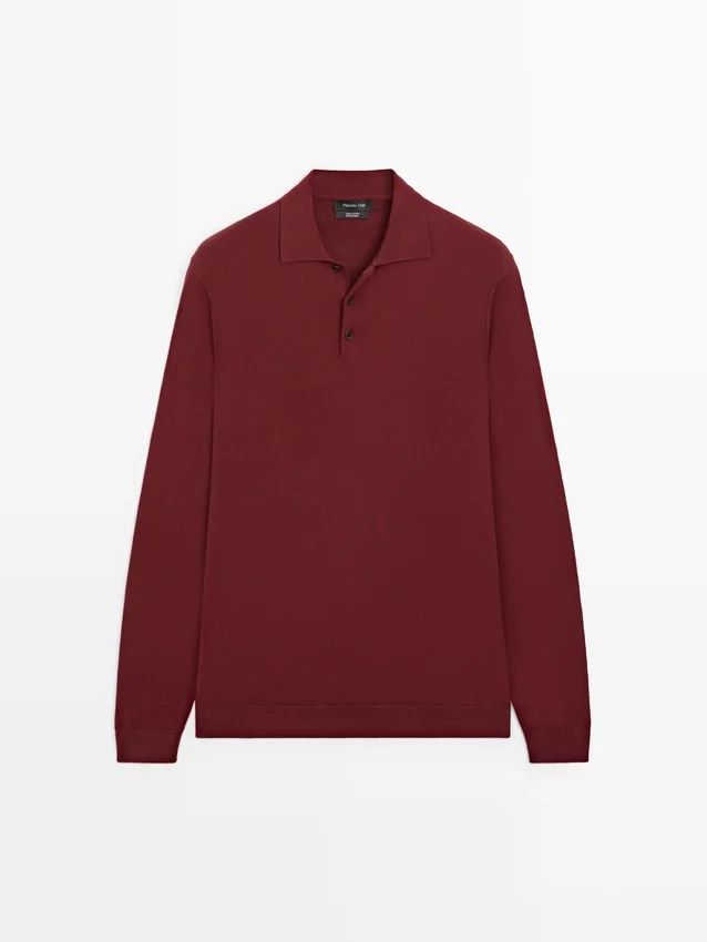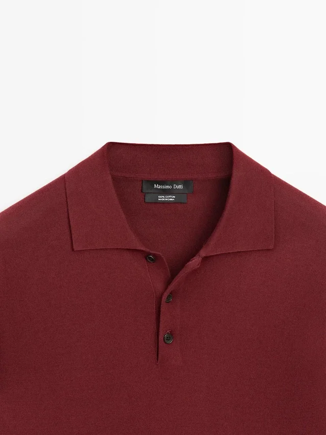 Knit Jumper Made of Cotton Fabric. Long Sleeves. Polo Collar with Button Fastening. Ribbed Trims .