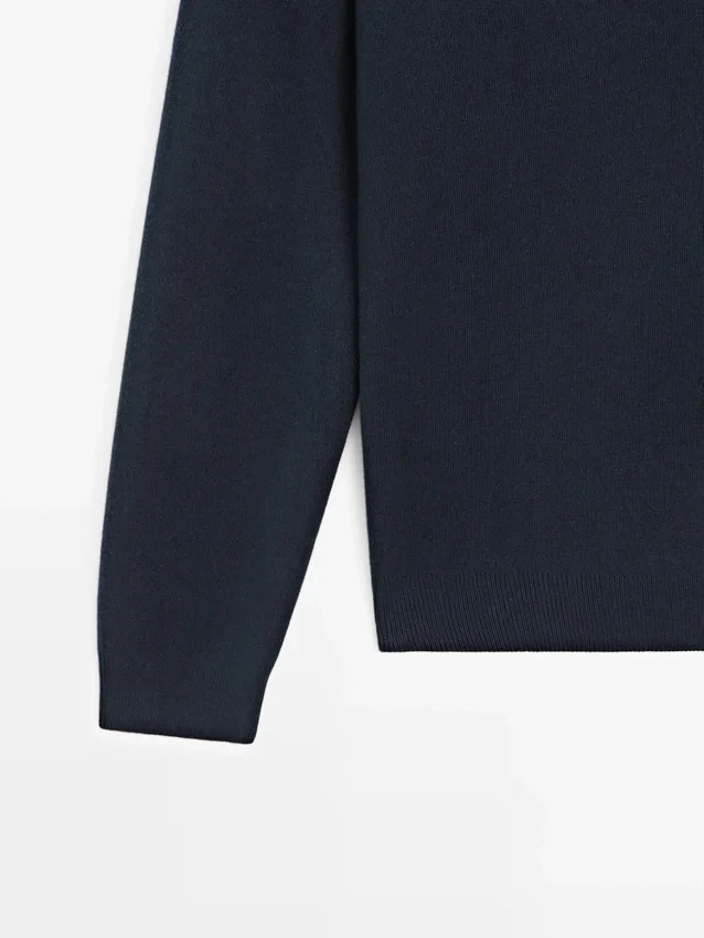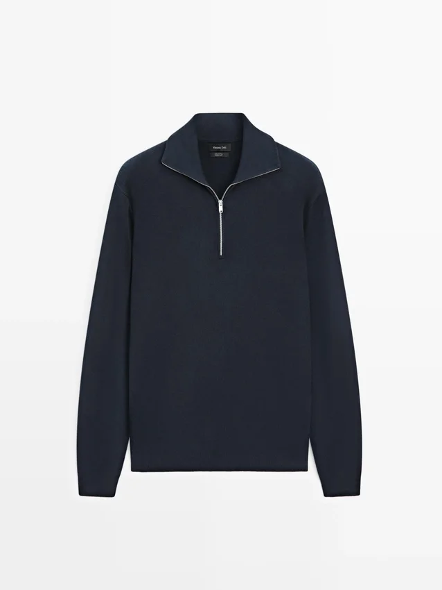 Knit Jumper Made of Cotton Fabric. Long Sleeves. Zip Fastening on the Neck. Mock Neck with Zip. Ribbed Trims . Soft Fabric That’s Pleasant to the Touch .