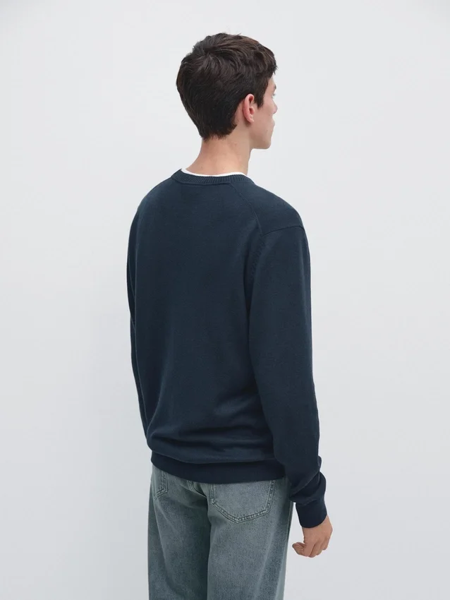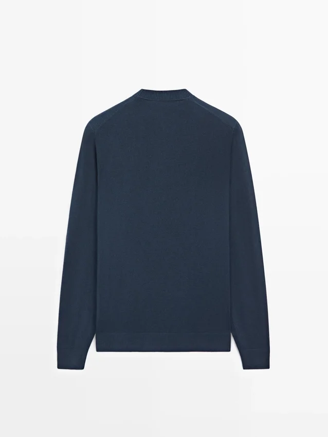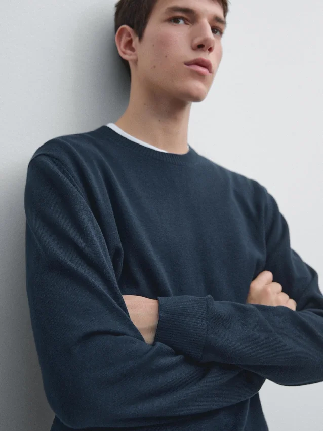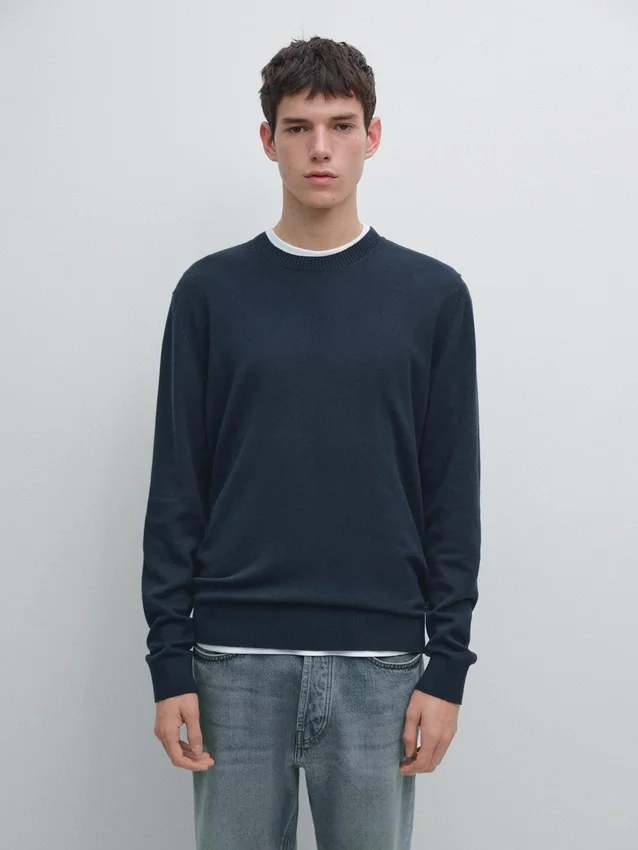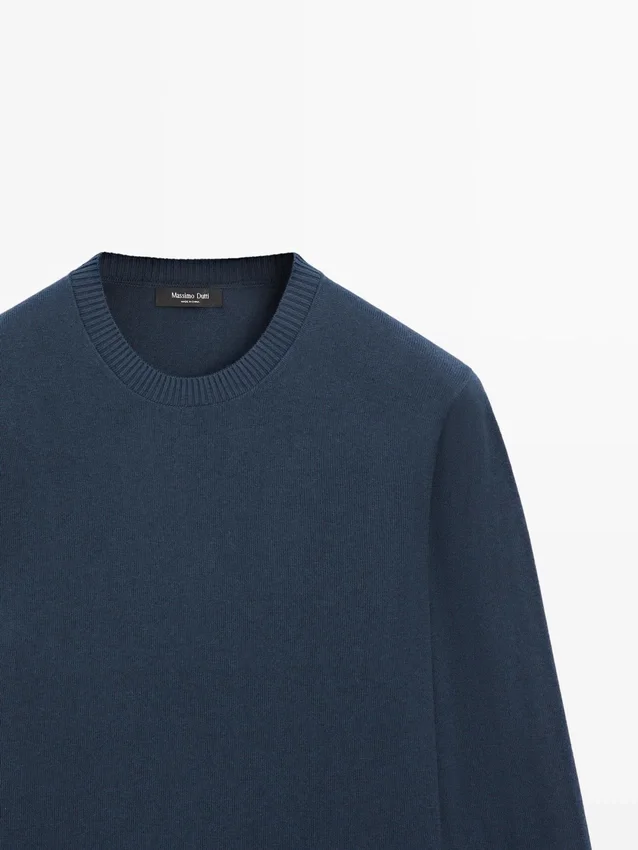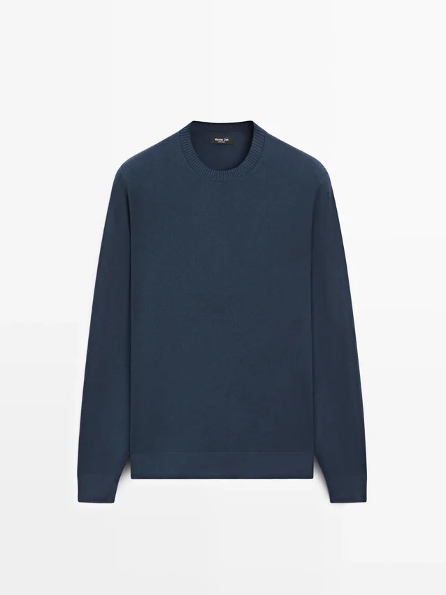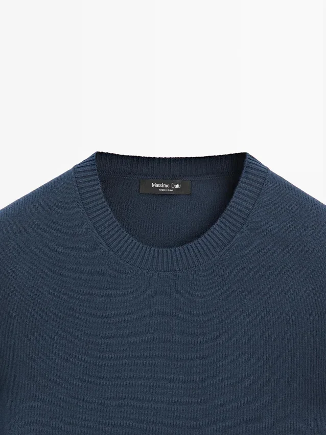 Cotton and Wool Blend Knit Sweater. Crew Neck. Long Sleeves. Ribbed Trims .