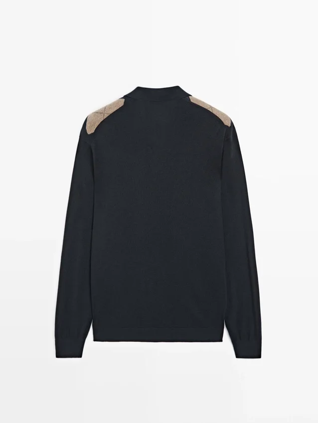 Be the first to review “Wool Blend Argyle Knit Polo Sweater”