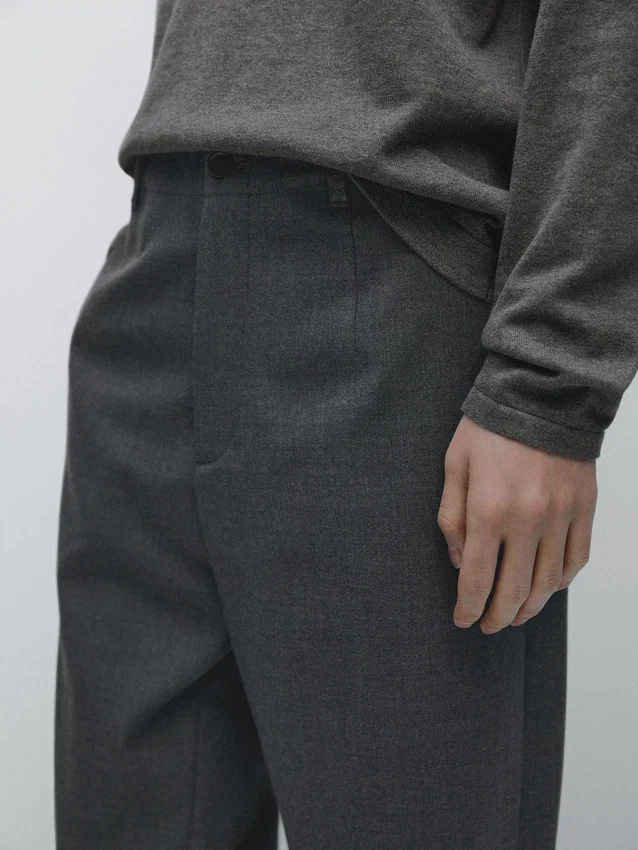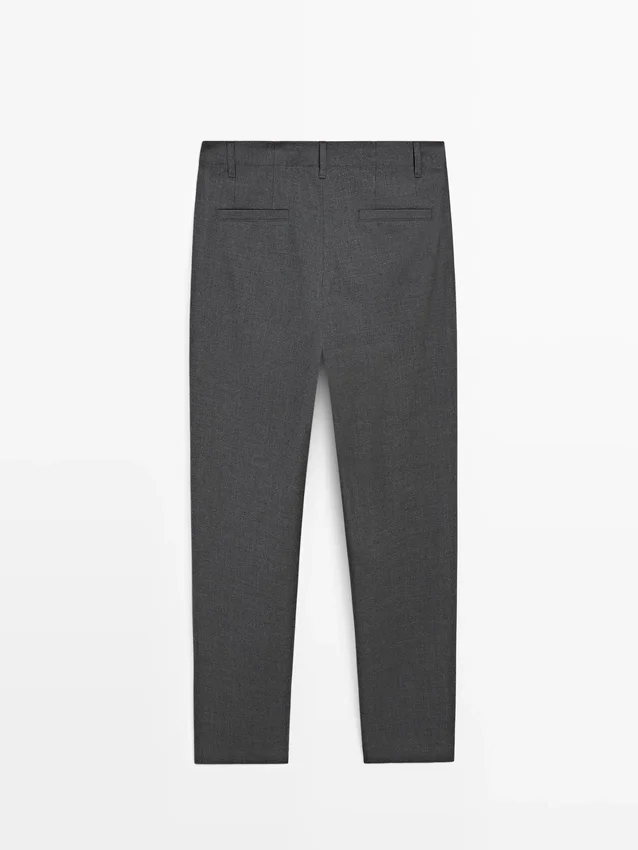 Trousers Made from Wool Main Fabric. Concealed Zip and Hook-And-Eye Fastening. Two Side Pockets.