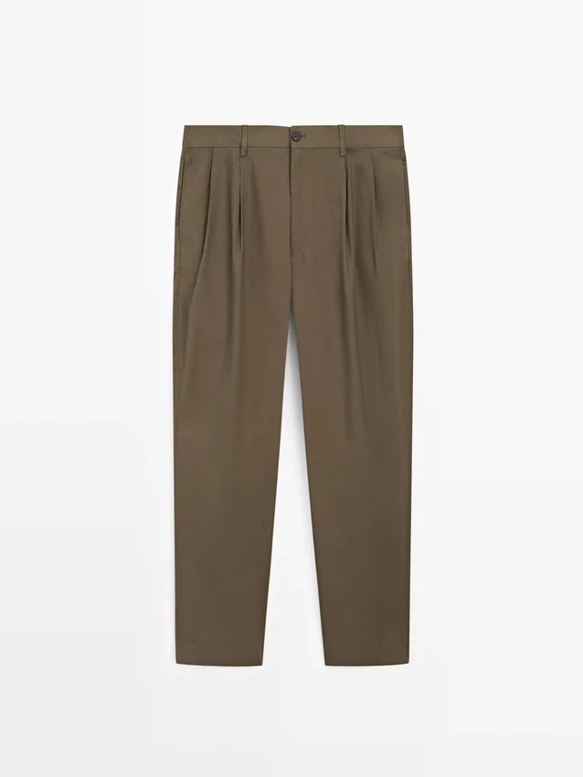 Trousers with Darts.. Belt Loop Details . Front Zip and Top Button Fastening. Two Side Pockets. Lined. Double Dart Detail on the Front.