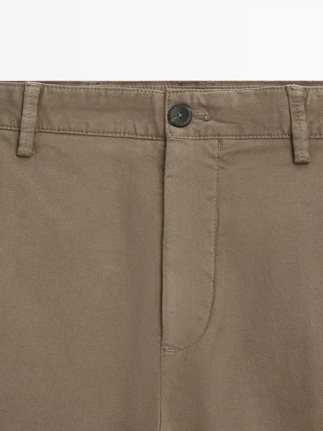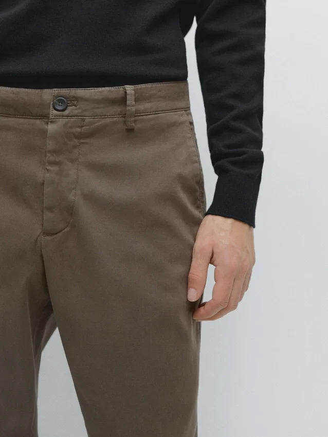 Slim Fit Trousers: This Fit Has a Slightly Tailored Silhouette, Tight at the Waist and Legs. Concealed Zip Fastening with Flap, Button and Inside Button. Two Side Pockets. Two Buttoned Welt Pockets on the Back. Detail of Fabric with Microstructure.