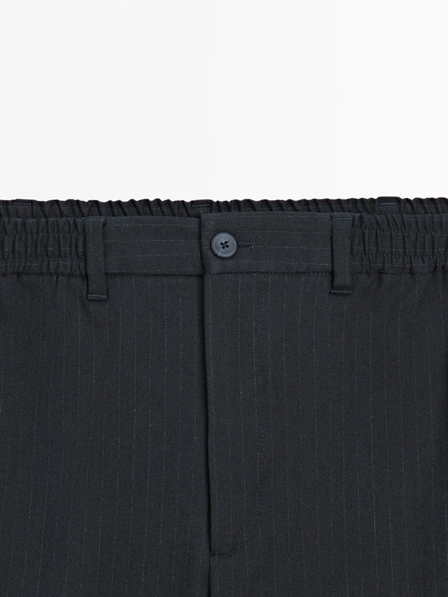Jogger Fit: This Fit Features an Elasticated and Adjustable Waist, and the Leg is Usually Slightly Fitted, Offering a Relaxed Yet Modern Style.. Front Zip and Top Button Fastening. Two Side Pockets. Two Welt Pockets on the Back. Striped Detail.