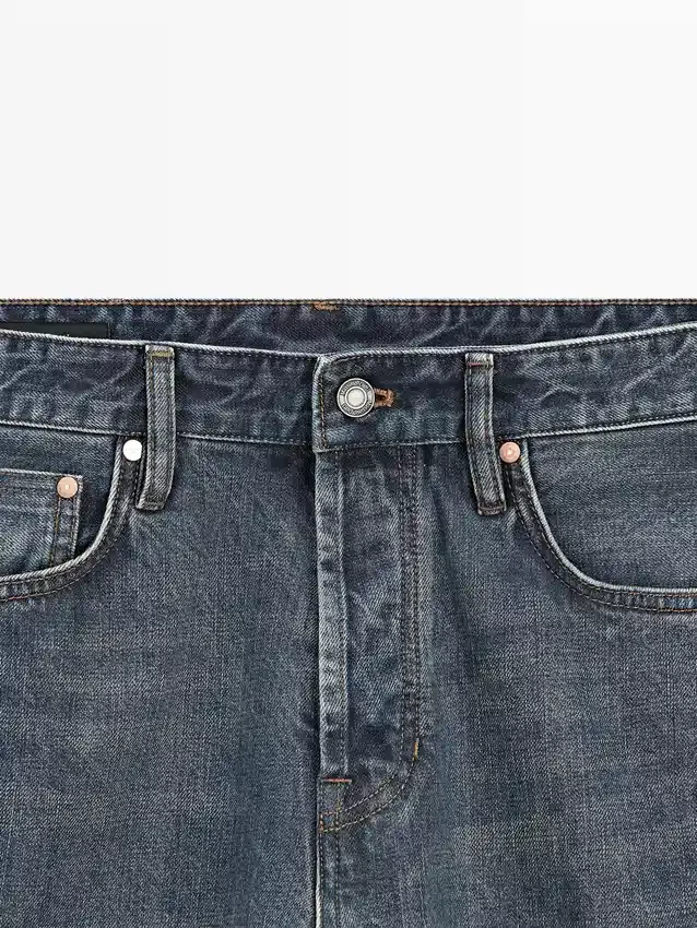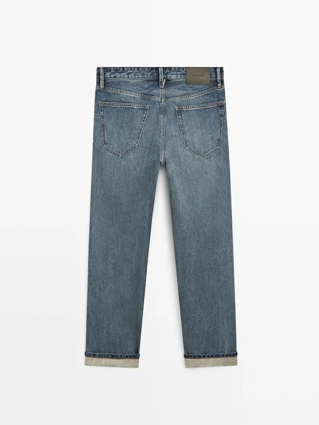 Selvedge Jeans with a Contrast Coloured Selvedge and Straight Outside Seam. Five-Pocket Design.