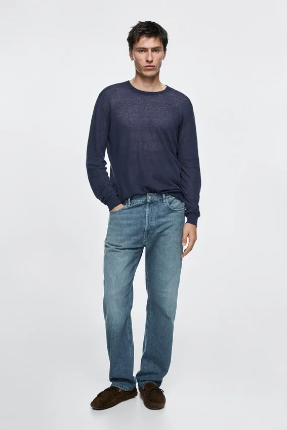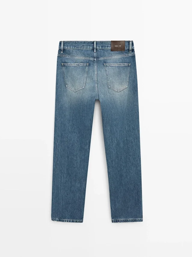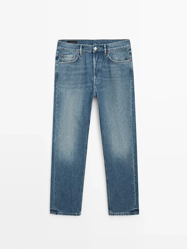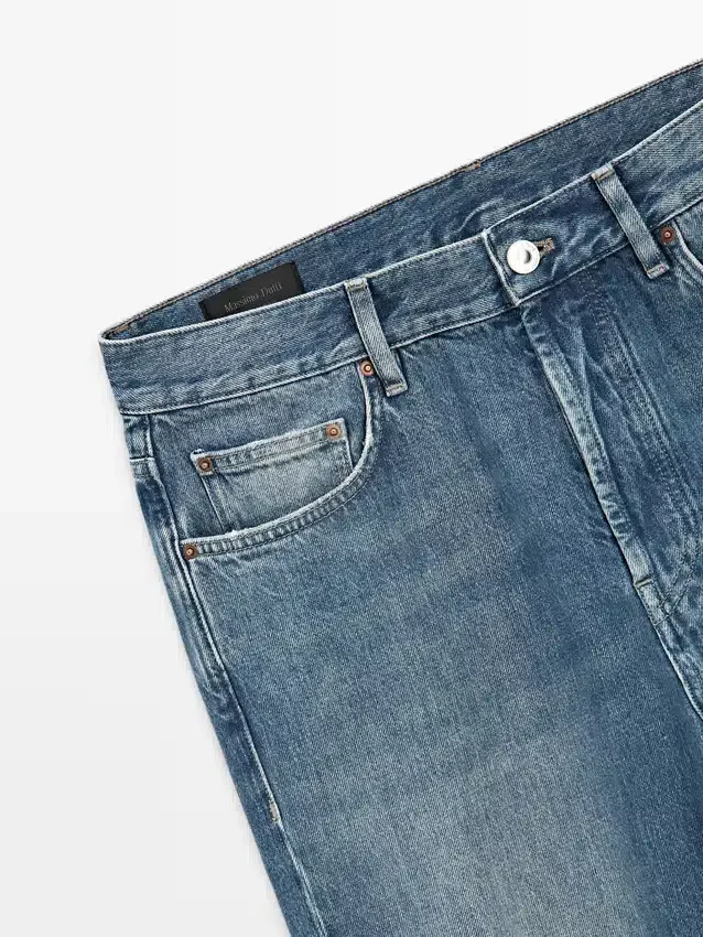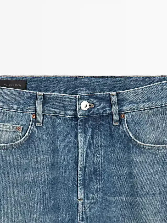 Straight-Leg Jeans: Straight Silhouette from the Waist to Ankle, with No Additional Leg Adjustments. Waistband with Belt Loops . Button-Up Front. Five-Pocket Design. Vintage Effect Finish That Recaptures the Naturally Aged Look on Denim with Copper Details. Made in Italy.