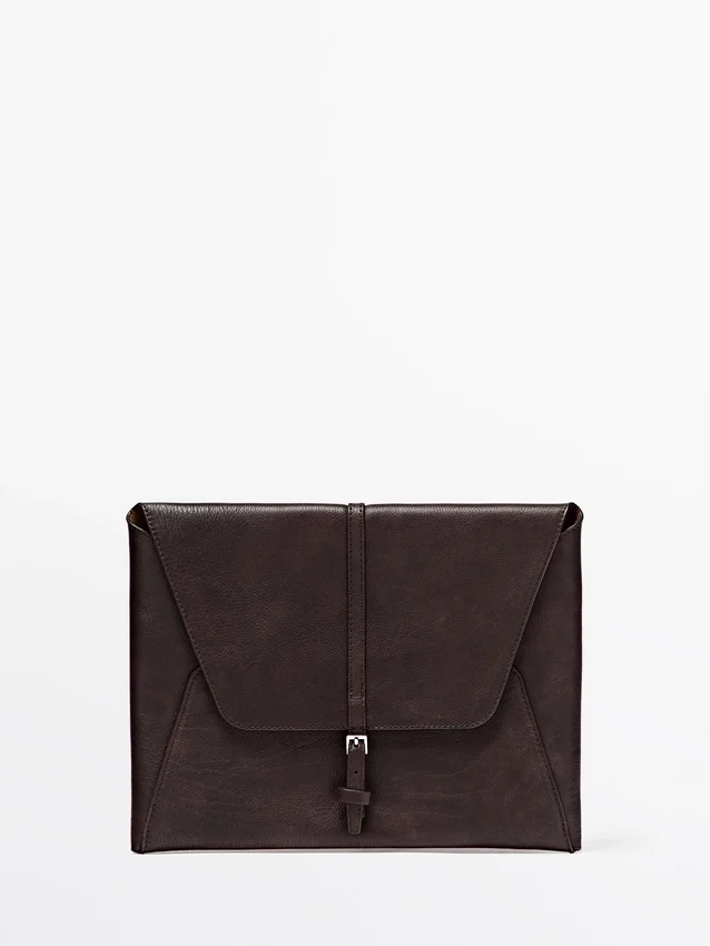 Ipad Case Made of Nappa Finish Cowhide Leather. Magnetic Snap-Button Tab Fastening.