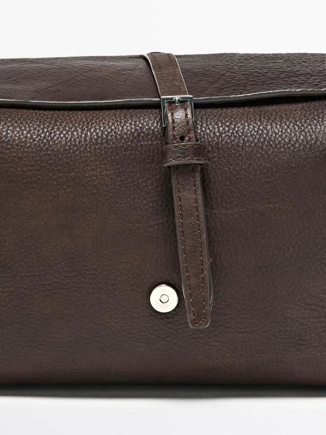 Travel Bag Made of Cowhide Leather with a Nappa Leather Finish. Magnetic Snap-Button Tab Fastening.