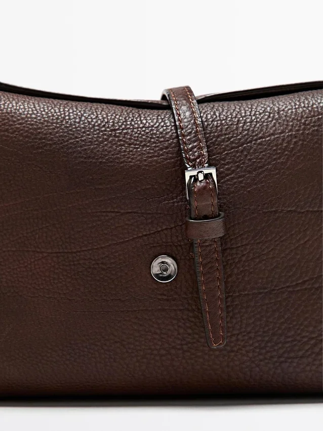 Travel Bag Made of Cowhide Leather with a Nappa Leather Finish. Metal Buckle Fastening and Leather Belt Loop.