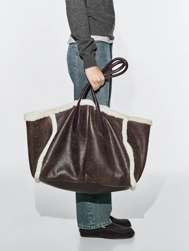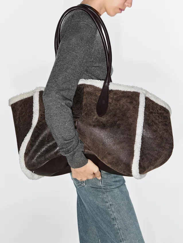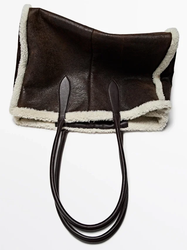 Maxi Bag Made from Cowhide Leather with Fur. Inner Buckle Fastening . Two Handles and/or Shoulder Strap.