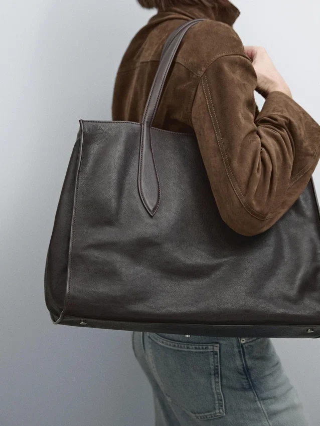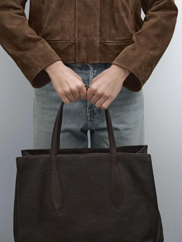 Tote Bag Made of Bovine Leather with a Nappa Finish. Two Handles and/or Shoulder Strap. Main Compartment. Cotton Lining.
