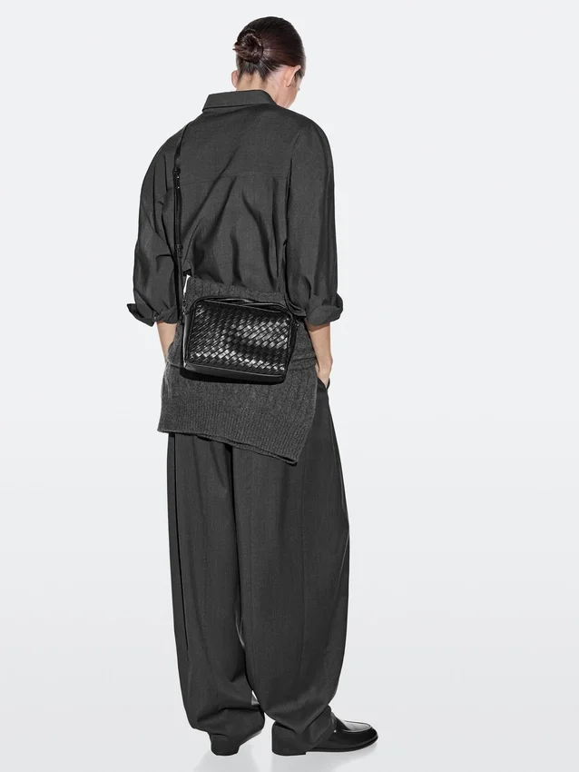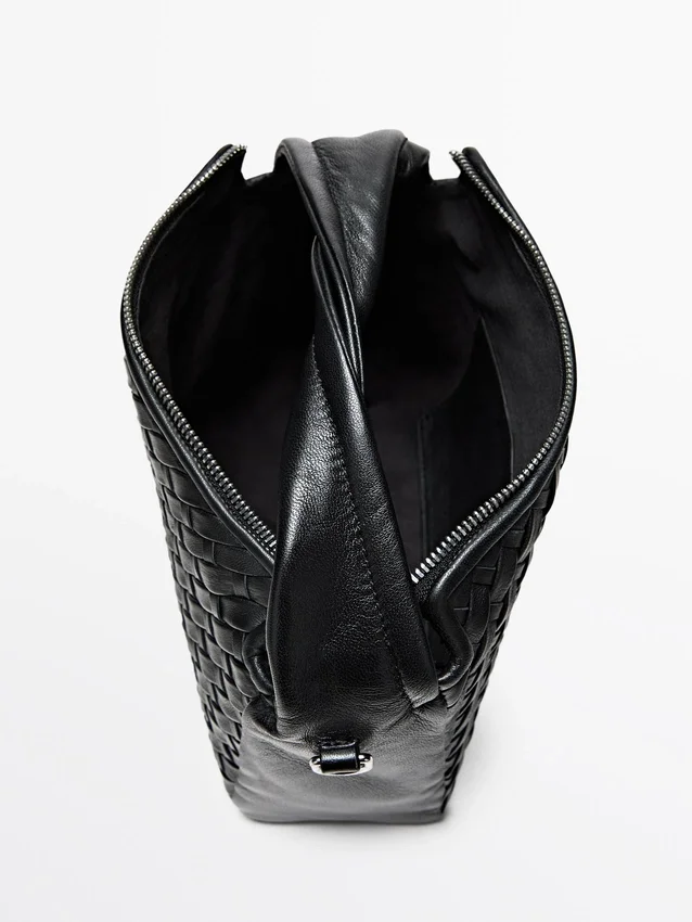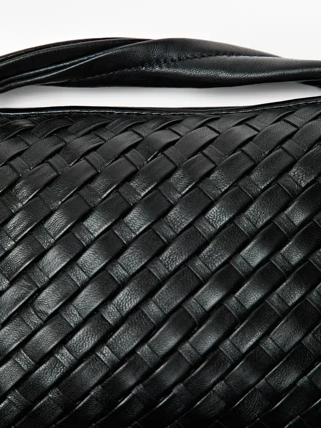 Bag Made of Sheepskin with a Nappa Finish. Adjustable and Detachable Crossbody Strap. Braided. Zip Fastening. Wrist Strap. An Inside Pocket. Cotton Lining.