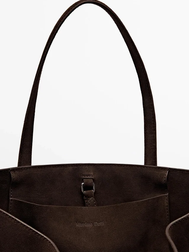 Maxi Tote Bag with Inside Buckle Closure . A Card Holder Pocket. Two Handles and Shoulder Straps . Main Compartment. Lined. Made from Bovine Leather.