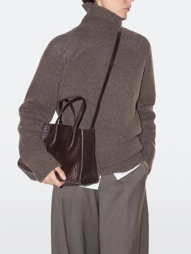 Handbag Made of Bovine Leather with Sheepskin Details. Adjustable and Detachable Crossbody Strap. Two Handles. Cotton Lining. Leather Detail with a Textured Finish.