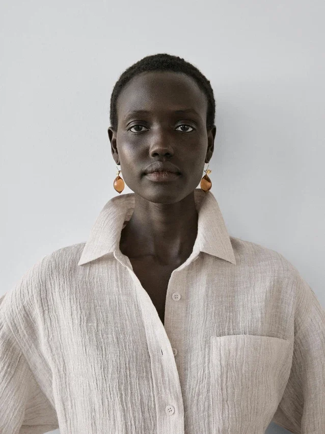 Overshirt Made of Linen Fabric. Shirt Collar. Long Sleeves. Button-Up Front. Patch Pocket at the Chest. Tied Belt in the Same Fabric . Waffle Knit Fabric. Matching Garment Available.