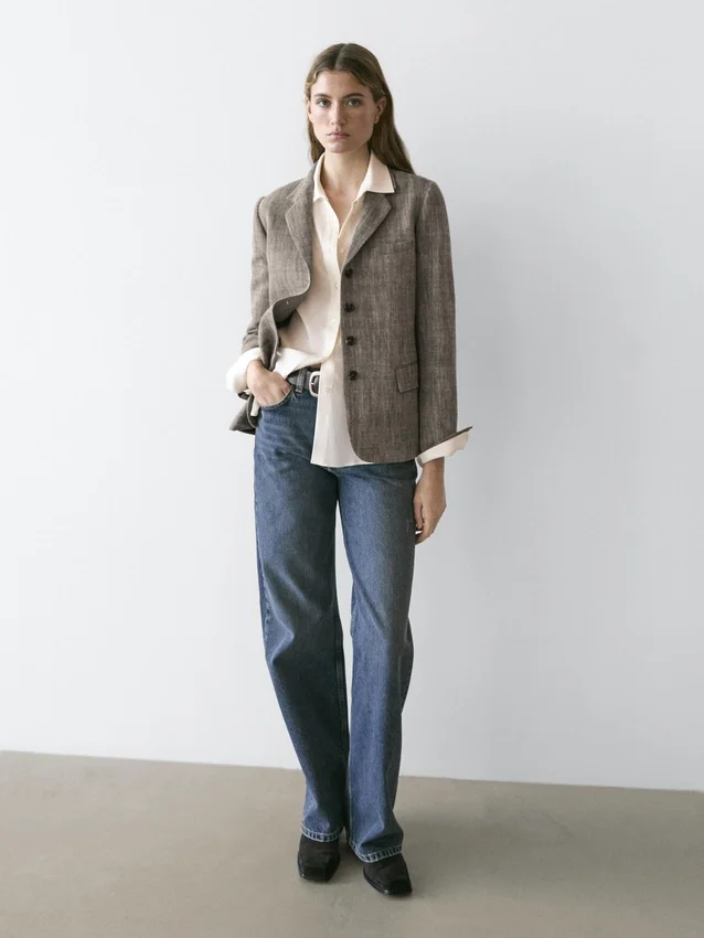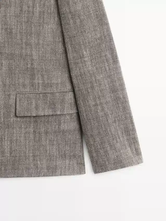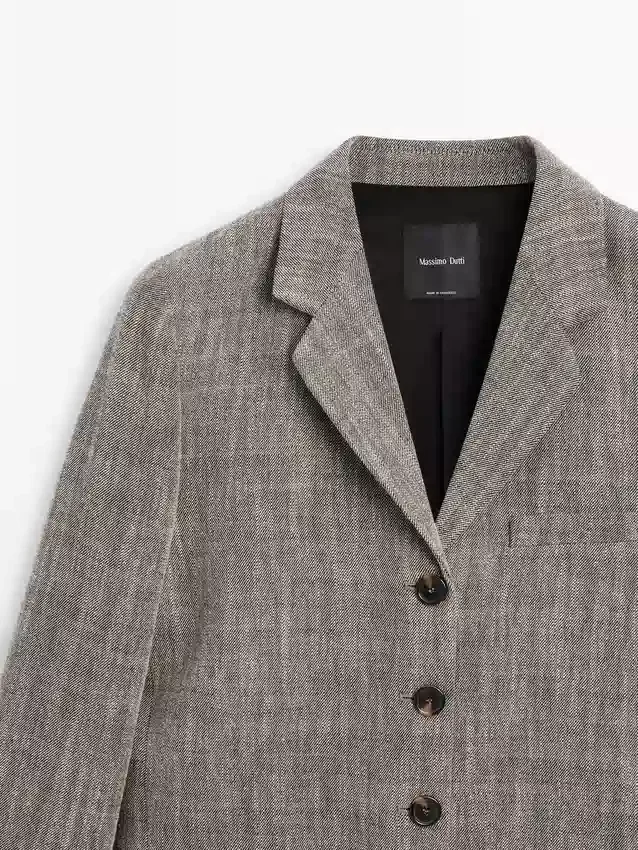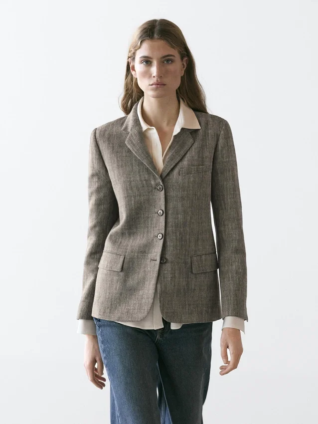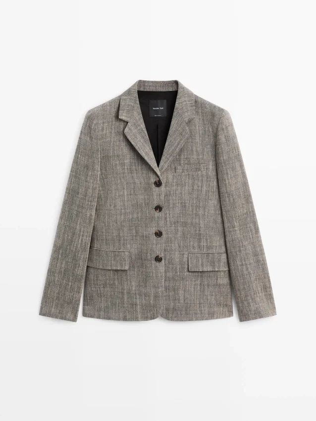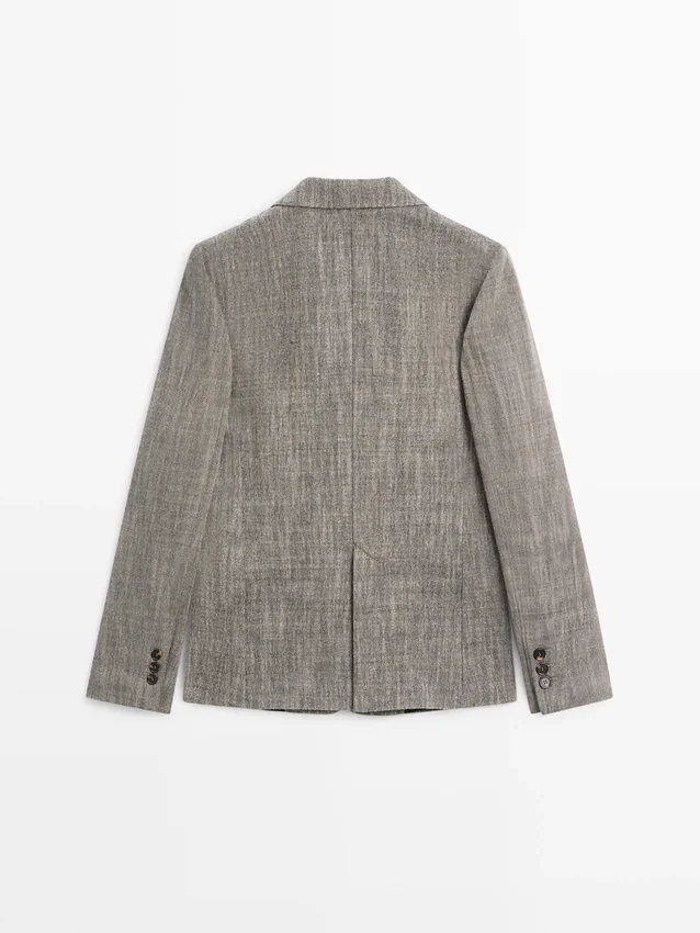 Blazer Made of a Wool Blend. Notched Lapel Collar. Long Sleeves with Buttoned Cuffs. Four-Button Fastening. Two Flap Pockets. Insert Welt Pocket at the Chest. Lined.