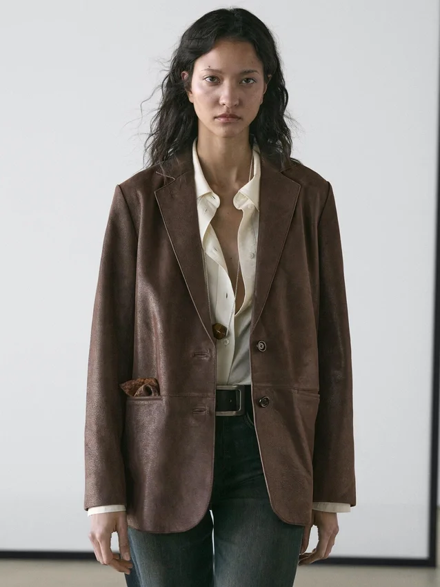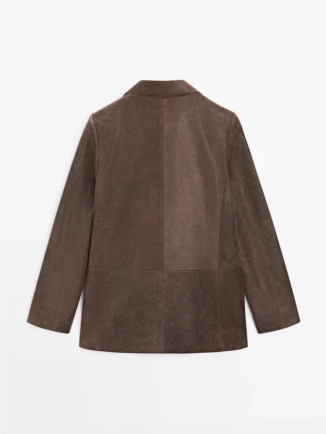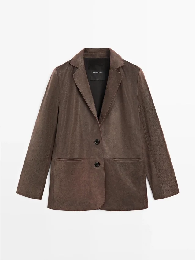 Blazer Made of Goatskin Leather with Suede Finish. Lapel Collar. Long Sleeves. Two-Button Fastening. Two Jetted Pockets. Lined.