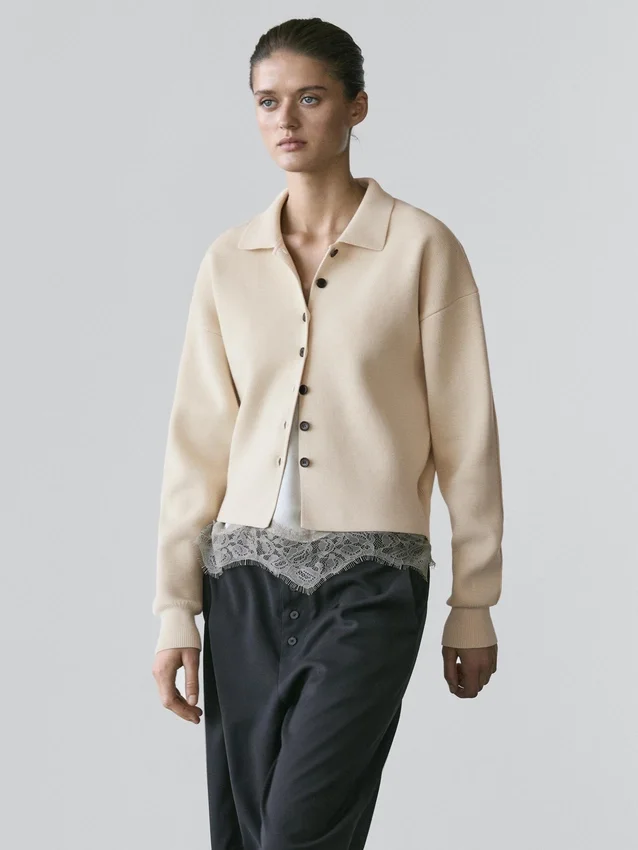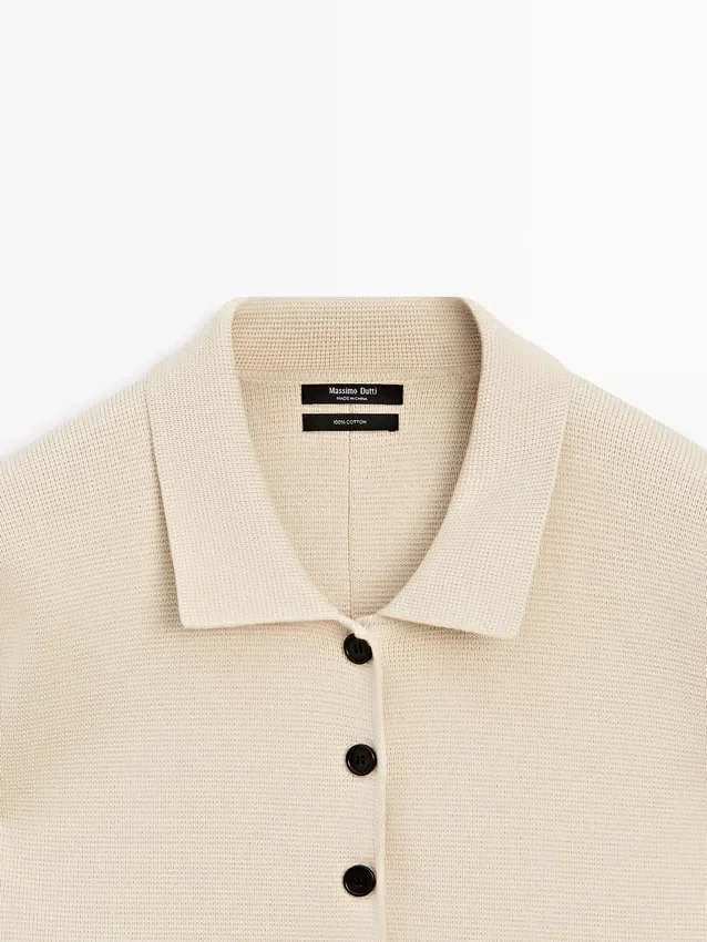 Cardigan Made of Knitted Fabric with Cotton. Long Sleeves with Ribbed Cuffs . Button-Up Front. Ribbed Trims .