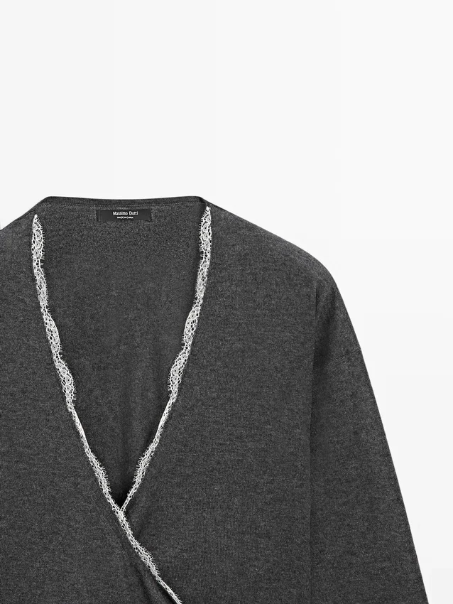 Wool Blend Knitted Cardigan. Long Sleeves. Wrap-Style Fastening with Ties.