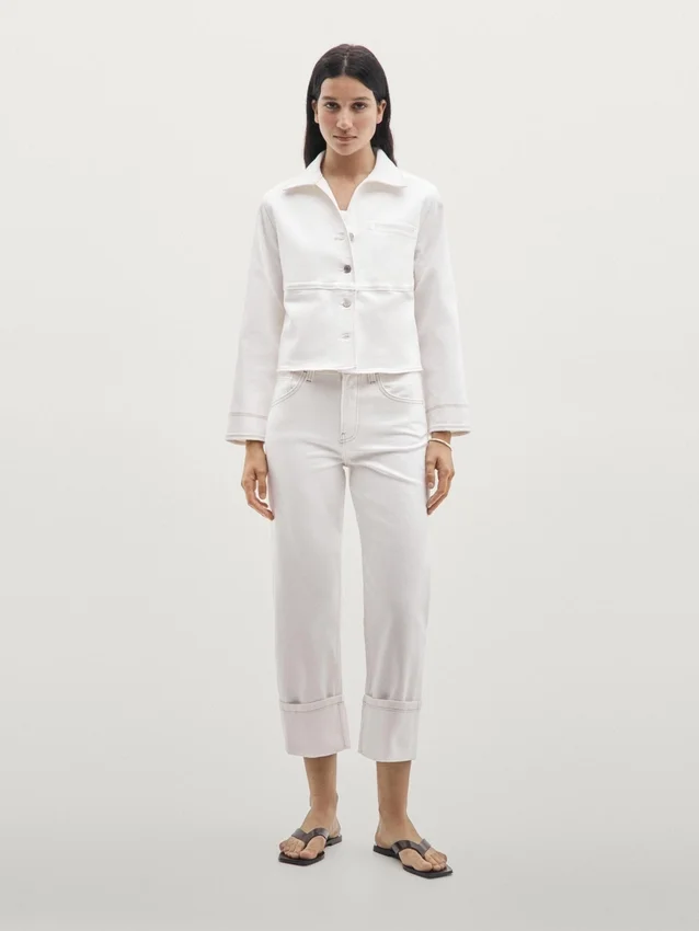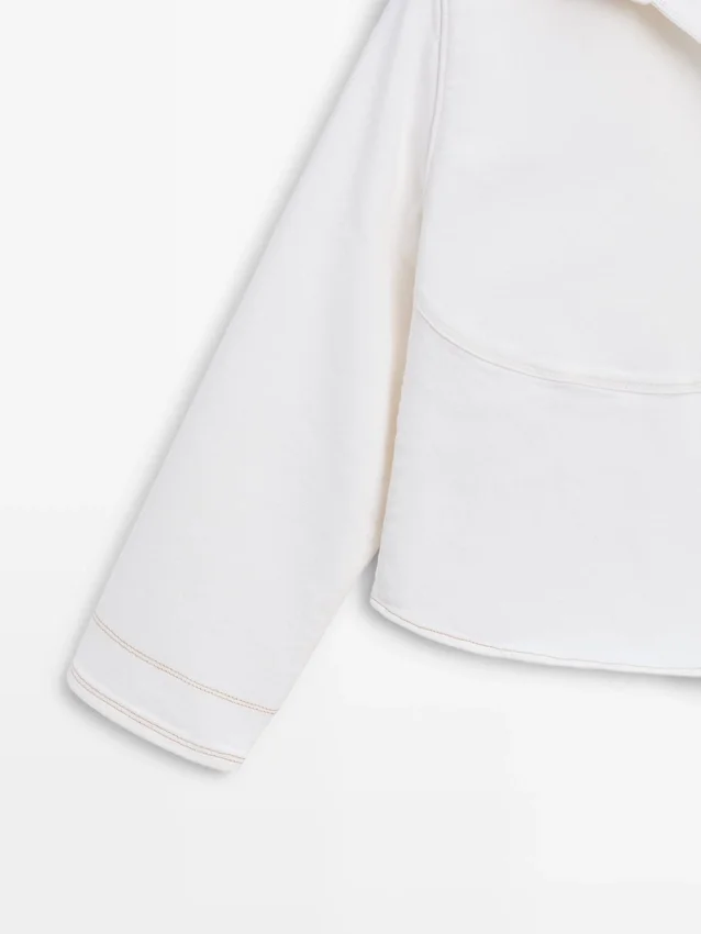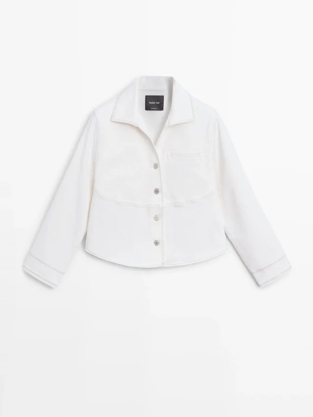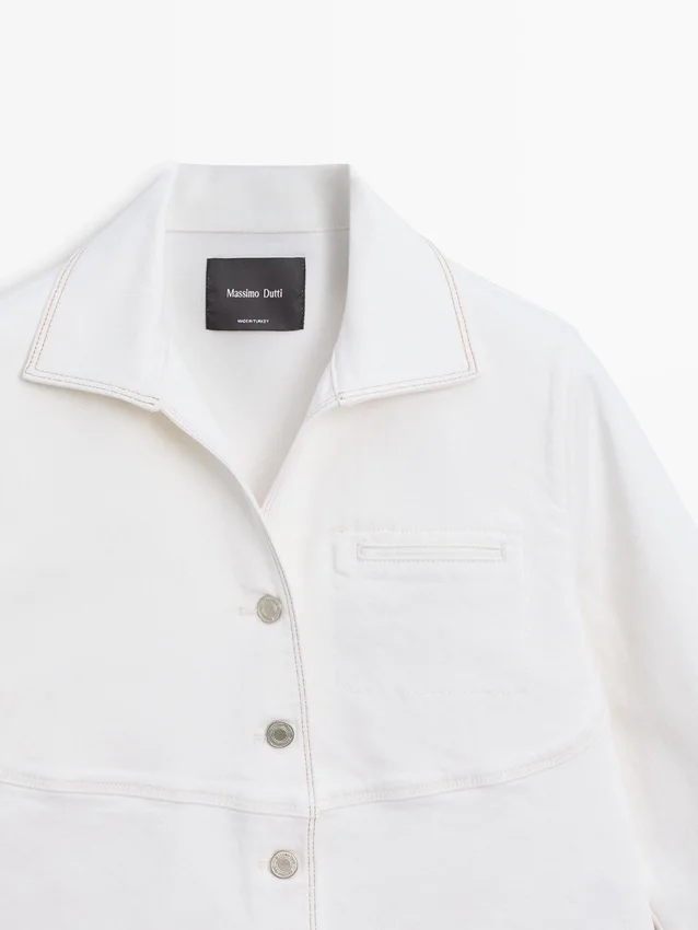 Denim Jacket. Shirt Collar. Long Sleeves. Button-Up Front. Insert Welt Pocket at the Chest. Contrast Colour Detail.