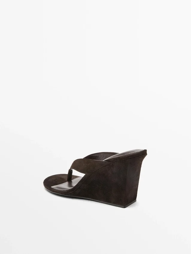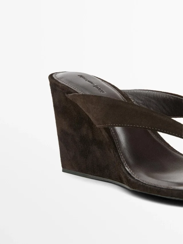 Made of Cowhide Leather with a Suede Finish. Leather Lining and Insole . Wedge Heel. Heel: 8Cm.