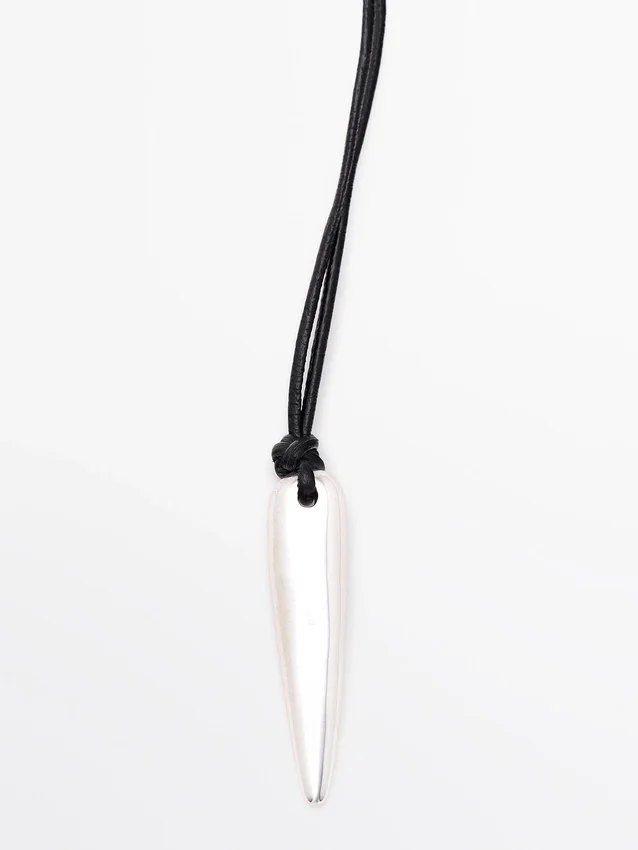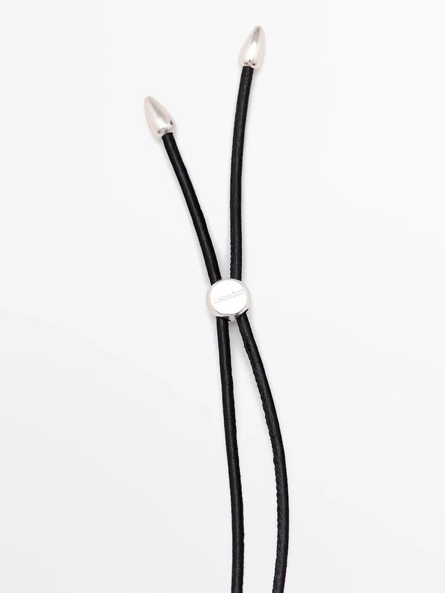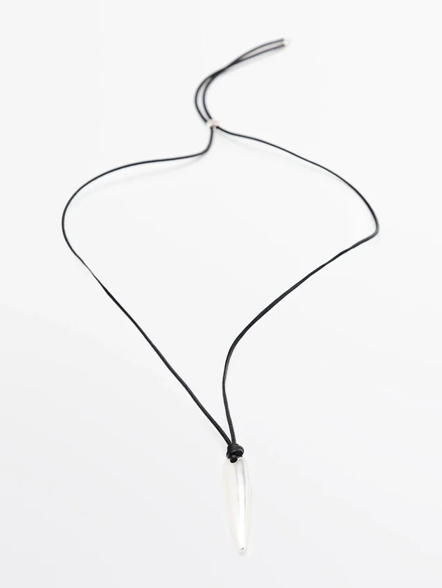 Leather Cord Necklace with Metal End . Drawstring Closure.