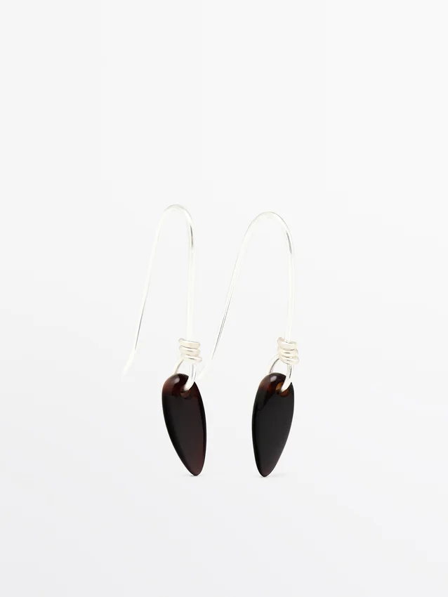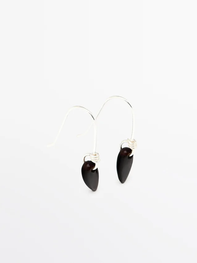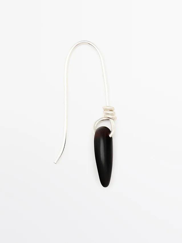 Pendant Stone Earrings. Silver-Tone Finish. Each Stone Has Its Own Variations in Colour and Grain.