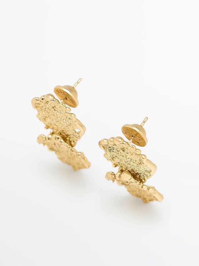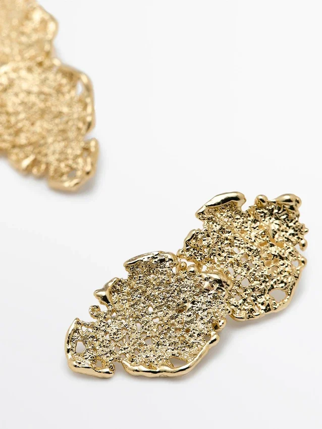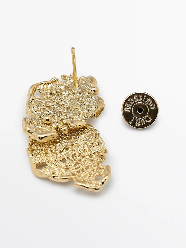 Earrings. Abstract Metal Piece. Snap-Button Closure. Length: 4.2 Cm.