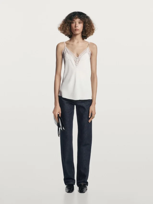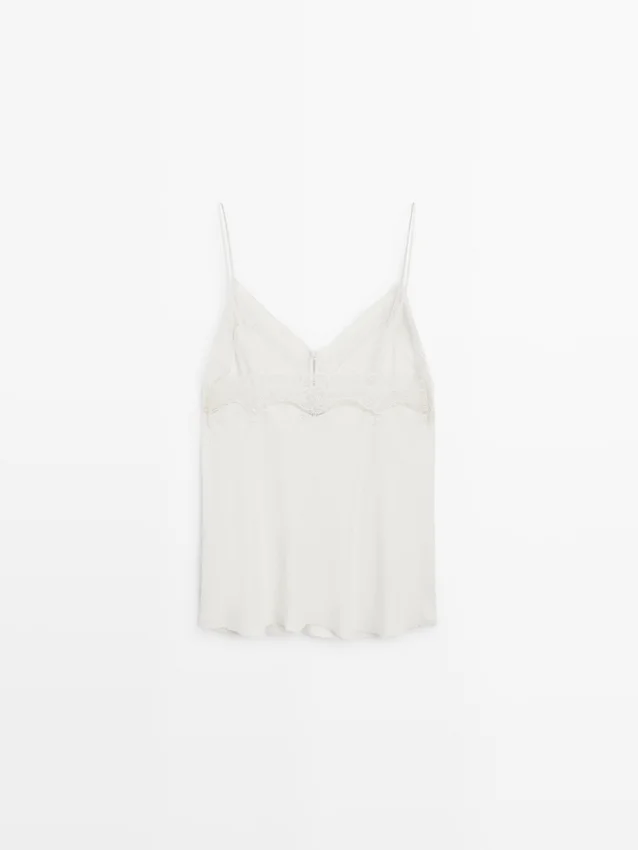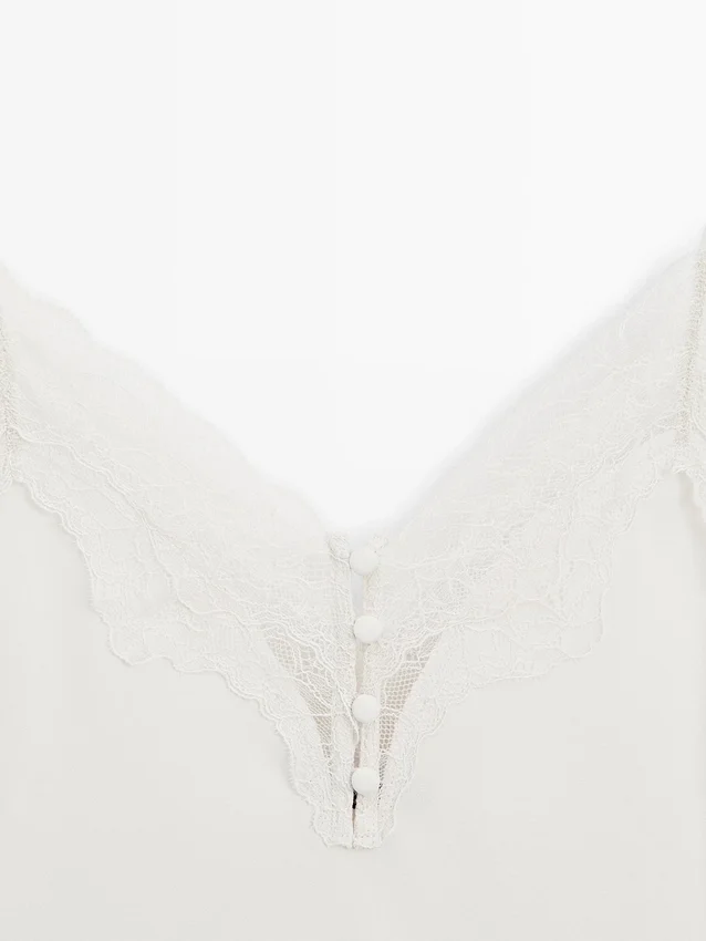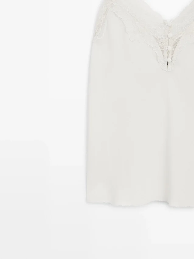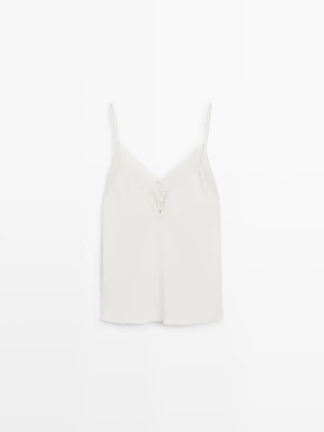 Camisole Top . Strappy. Lace Detail. Covered Button Detail .